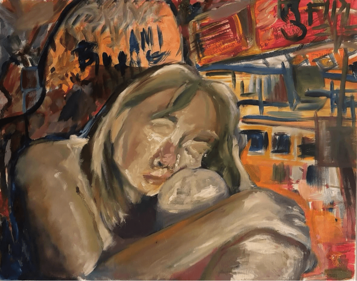 In my personal work, I focus on emotional expression through commenting visually on the world I observe. My elements of abstraction are influenced by my relationship with colors, more specifically how they communicate sentiments or feelings that are otherwise limited by language alone. My goal as I construct a body of work through bases of oil paint and mixed media is to create a relationship with the mediums that fully embodies and stretches their purpose. Becoming articulate in their language allows me to understand my place in the world and to recognize the spaces and company I am currently in, as well as the themes and thoughts that stick with me through change.