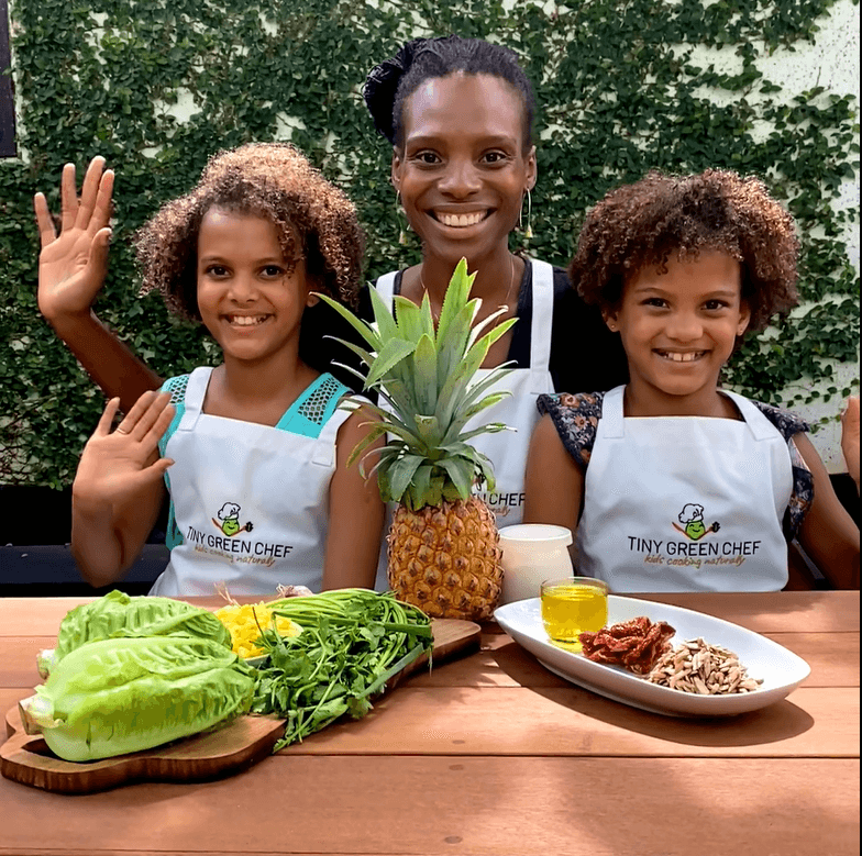 We were in Bali at the time, and instead of panicking, we pivoted into creation mode. My daughter had been asking for years to turn our family’s passion for plant-based cooking into something more, so we took the unexpected pause as the perfect moment to create Tiny Green Chef, an online plant-based cooking course for kids.