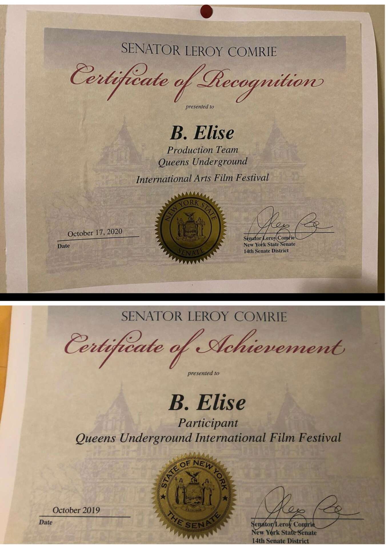 This also lead to me being a production manager for a film festival out in Queens with the same organization. Where I helped with media, team management, film viewing and selection. I was also honored by Senator Leroy Comrie 2x for my participation.