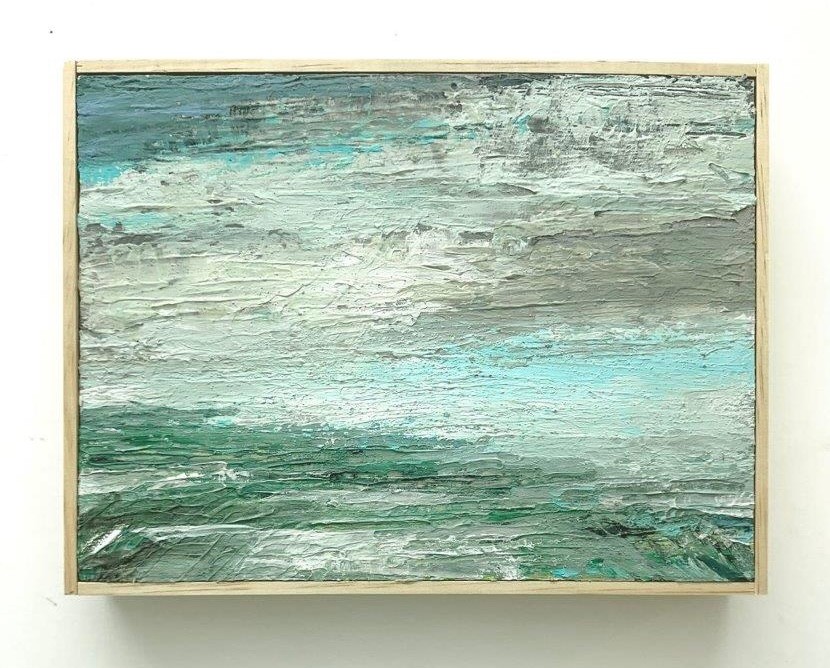 I never planned a career in the arts. Had I not taken a college creativity class in basic drawing, none of this may have unfolded. A whole new world was opened to me by my first art professor and artist Squeak Carnwath. I went on to study with noted painters John Walker (former grad arts director at Boston Univ), Bernard Chaet (longtime Yale arts faculty and one time chair), Wolf Kahn, and a number of others. This foundation really helped me begin to get my bearings as a young artist. From there it has just been a road like most artists, most of all of us in life – filled with ups and downs, challenges, and times of great awe. I work in two modes which I am well aware is not the norm as far as the formal art gallery world is concerned. I paint both contemporary abstraction with hints to social commentary related to male cultural role models (www.benjunta.com – insta @benjuntastudio), as well as contemporary landscape paintings (www.paintscapestudio.com – insta @paintscapestudio). That said, for 20 years, I did not deal with landscape painting, but about a decade ago, while sitting out on my surfboard looking up to the beautiful rocky coastal outcroppings, I felt a strong pull to capture that as well. The landscapes were included in a summer 2023 group show with The Bridgette Mayer Gallery in Philadelphia, PA