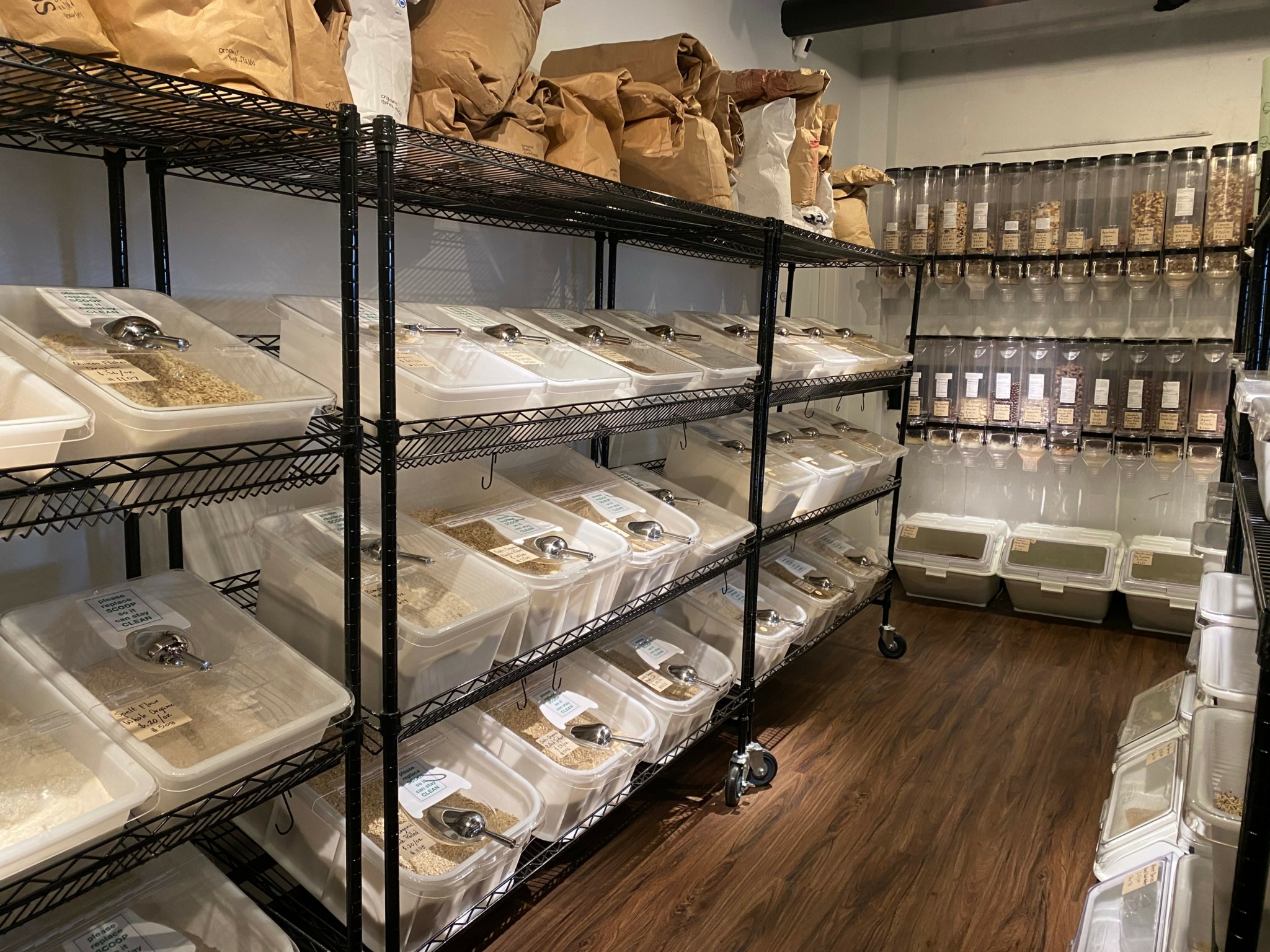 Minimal Market is an organic, low-waste grocery store. We source mainly organic foods, all-natural household and personal care products, and partner with many local small businesses as vendors. The majority of the store is package-free, which means our customers purchase by weight. We provide compostable bags for free, glass jars for purchase, or most commonly, customers will bring in their own containers and refill them. This is valuable for them as they are not paying extra for (often plastic) packaging or marketing costs. They also control the amount they purchase so that can further drive down costs which allows them additional flexibility to try new items without buying more than they want or will use. Re-using containers is perhaps our best shot at reducing the amount of waste and single-use plastic in the environment and our hope is to bridge the gap for people who can’t fully go zero-waste but want to do more (or in this case, less).