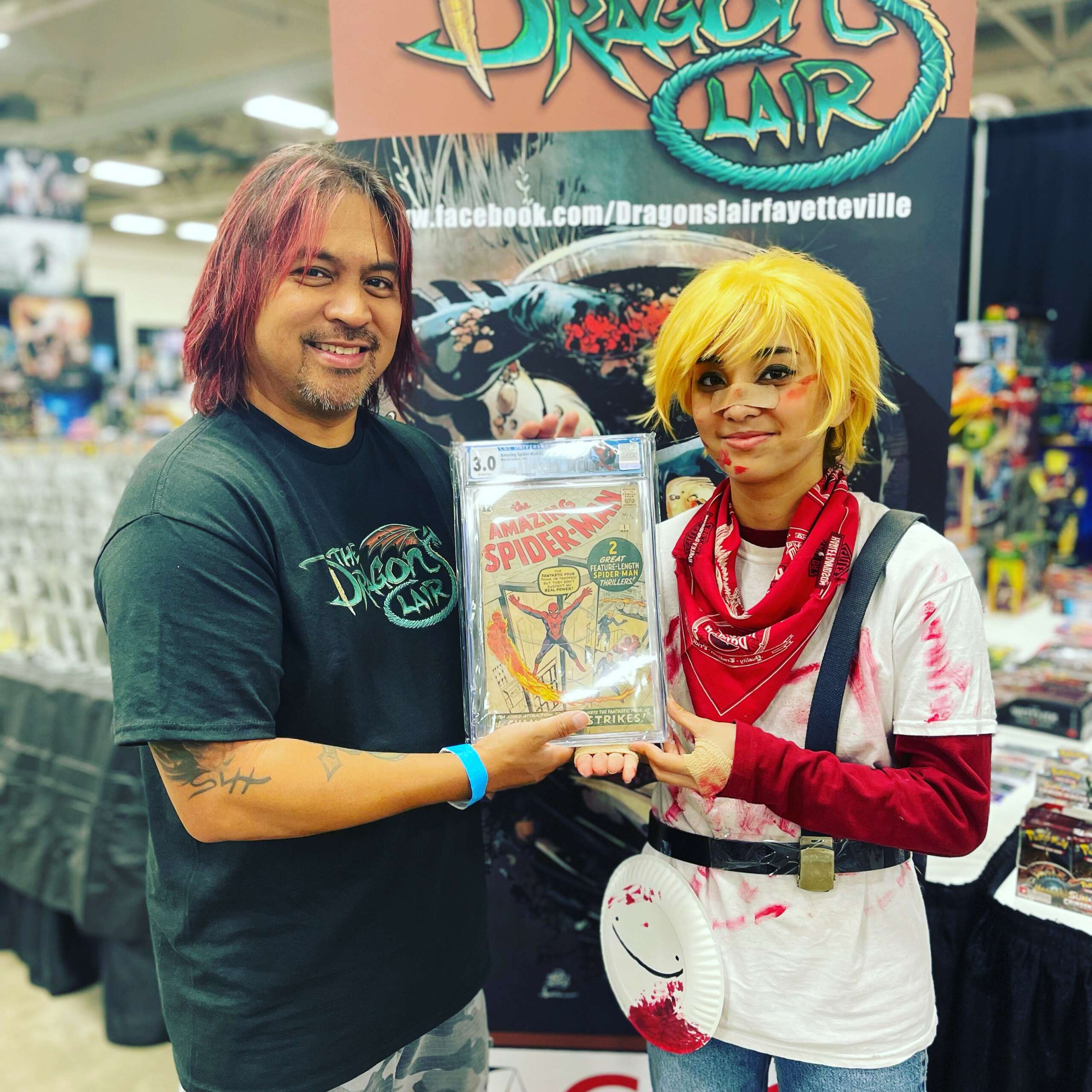 I had been going to the Dragpn’s Lair since I was a 12 year old kid when it was started in a flea market. After a few years I stopped collecting because my interests turn to music. After I graduated from Highschool my goal was to go to Los Angeles and become a rockstar. I was driving by the store and decided to stop in. I bought a book and was bitten by the hobby again. As I was doing my day job preparing to save to go tp LA. I stopped in on my day off and the manager asked me if I could help out getting some books ready for customers that week. I started helping out weekly. I was playing in a band and one night we are playing in a club and the first missles were launched for the first desert storm. After that dynamics changed in the music scene in NC. Then the music I loved coming out of LA shifted to Seattle and the sound that became known as Grunge. Not digging that and meeting a girl changed my ideas in life, When the soldiers returned from the war the lack of customers really hurt the Dragon’s Lair and the owner wanted to sell. A few people tried to get the capital, but could not. My mother who owned a successful Nail salon ( one of the first in Fayetteville) negotiated a deal with the owner John Hancock to see if I could turn it around save it and if so we would purchase it from him. John was a good man and agreed. After a few months I and a few friends turned it around to the place we loved growing up going to. We then purchased the business. God rest his soul, but I own John Hancock for a lifetimes of great memories and everything that came from this. I’m very proud to have made with many friends the Dragon’s Lair what it is today. It is a staple of the comic community. We give back as much as we can to the Military and local community in many different ways.