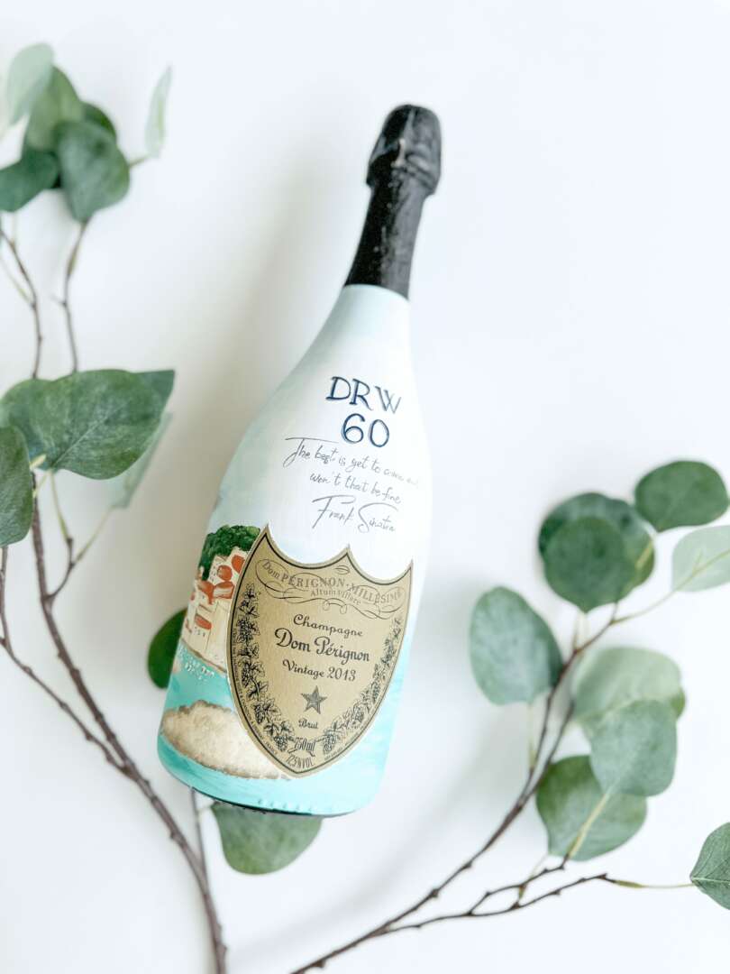 I am a self-taught artist! Other than art classes in elementary school, I have had no other professional training. I have always been a very creative person. If I ever have extended time to fill I find my self using my hands and creating and starting new projects. The idea to start painting champagne bottles came to life when I was on maternity leave with my second child. You might think that I would have had my hands full with an 18 month old and a newborn, and you would be correct! But I still found that in the midst of changing diapers and coordinating naps I needed a creative outlet. I found that outlet in painting champagne bottles! What started out as a fun hobby quickly became a passion and ultimately a thriving business. I have been painting bottles for a little over 2 years now and have come a long way since the first few bottles I painted. I have a special place in my heart for those bottles because even though they personally make me cringe, they also show how far I have come and how much I have learned as an artist. I like to say that my learning to paint was trial by fire. I would say yes to so many orders that came to my table and then have no other choice but to execute them. I remember the idea of painting dogs, houses and people was incredibly daunting, but after the first few that came through I was able to prove to myself that I can actually paint those things and them not come out terrible! My skill has been refined over a short period of time because anything that you do for hours upon hours, days on end, you’re bound to get better at. Knowing what I know now and where I have ended up, I do wish and wonder what it would have been like had I started my artistic training earlier in life. I wonder that to this day, still having no professional artistic training. The most essential skill in my opinion is the attention to detail and the time. The thing that I believe takes my work from good to excellent is the attention to detail. When I am painting a portrait or even something simple like florals, it’s the fine lines, the texture, the shading and all the other little details that will catch the viewer’s eye. Attention to detail and patience go hand in hand. Meticulously adding every little details takes incredible patience. It’s tedious work that ultimately yields a satisfying result. Having said that, the biggest obstacle that I have found, is in fact the time. I do have a family that I pour my heart into. My two kids, a 2 and a 4 year old, are not themselves obstacles, but the time that I desire to spend with them finds me not being able to spend the amount of time that my art demands as well. As a result, I will usually find myself still up and painting into the early hours of the morning several nights a week. It truly is a work of heart.