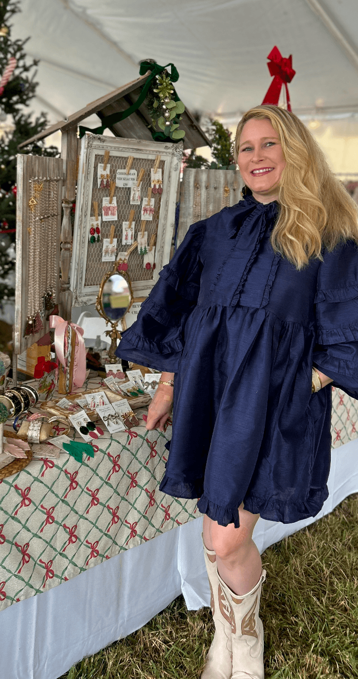 In recent years, my most popular collections have been my Christmas jewelry and artwork. I plan months in advance—from color palettes to overall style. It’s incredibly exciting to see everything come together at the first holiday show of the season. This year, I envisioned a backdrop styled like a wallpapered boutique wall. With my stepdad’s help once again, the display turned out exactly as I imagined. For me, it’s never just about selling jewelry—it’s about creating an experience. I want customers to feel the care, thought, and attention to detail the moment they walk up to my booth.