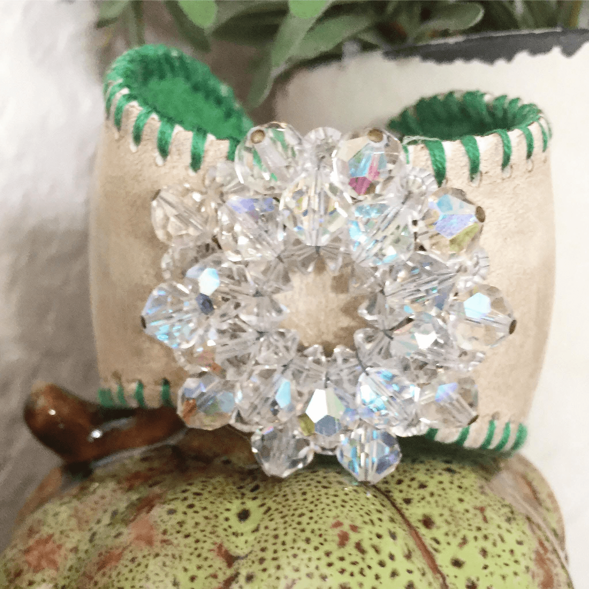 After moving to Florida in 2012, I began branching out from hair accessories and started creating one-of-a-kind jewelry. My first jewelry pieces were cuff bracelets made from repurposed baseballs, topped with vintage brooches—they were a big hit! I also began collaborating with my stepdad to create wood jewelry: I designed the pieces, and he brought them to life. Since then, I’ve grown into creating various collections.