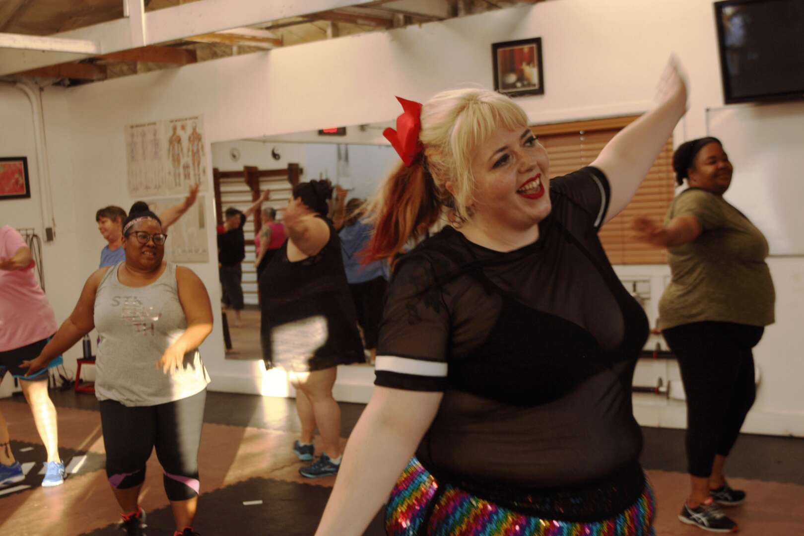 I have always felt passionate about sharing the framework of regarding your body with love and care with folks through writing my blog (queerfatffemme dot com) and through my podcast (Bevin: A Femme over 40 and her Friends). But aerobics is so special because we learn things 7-20 times faster when we involve play and joyful movement in the teaching. It’s the fastest way I have to help folks feel free in their minds and bodies.