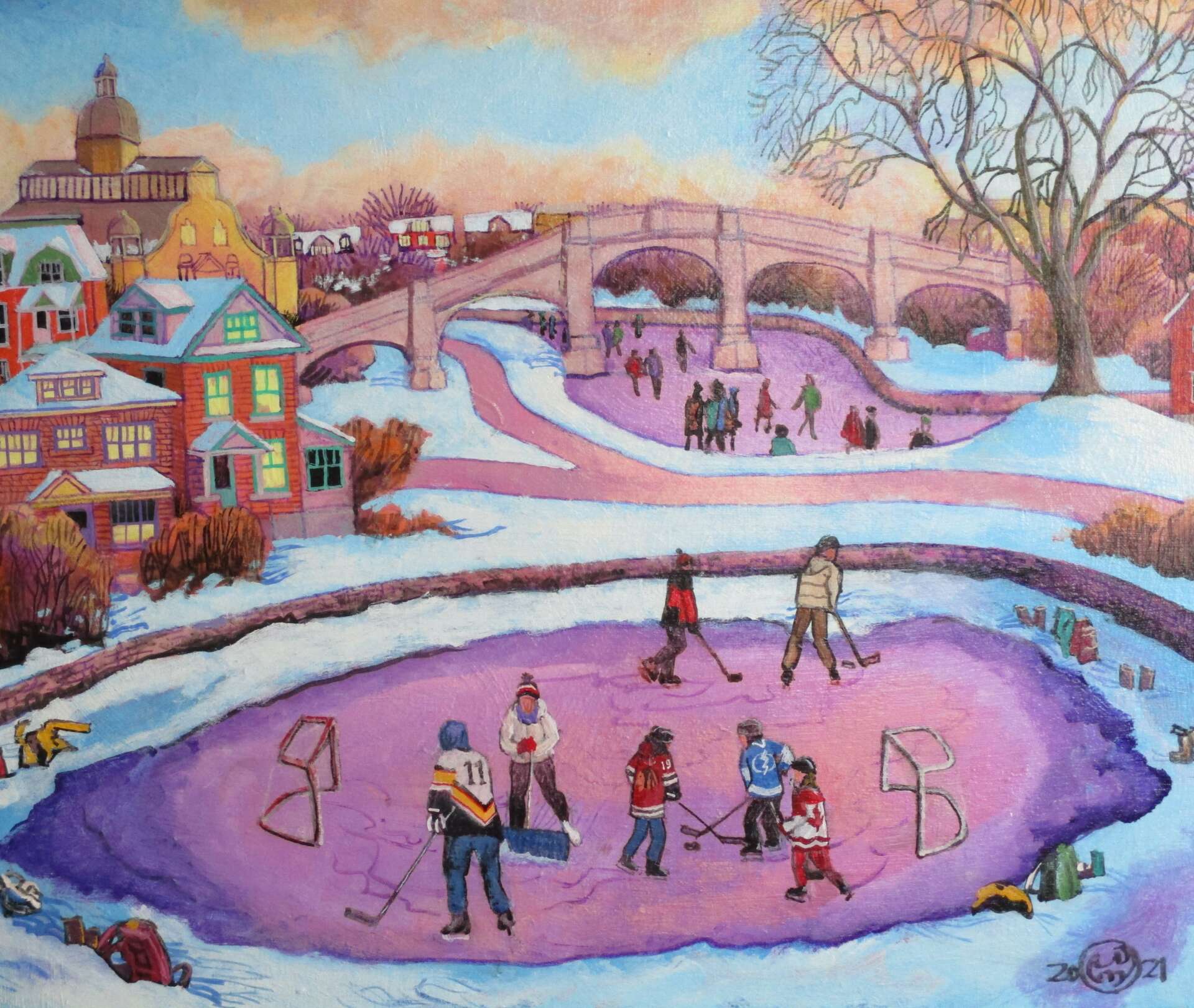 I am Bhat Boy. I am an Ottawa painter, not because I am from here, but because I paint Ottawa. My specialty is that I paint architecture, and I have a unique and whimsical way of looking at the world around me. Each of my paintings is a story. When they leave my studio they go out into the world to make people happy. I know every morning when I wake up, that hundreds of other people across the world are also waking up to my paintings I love colour and I see it everywhere in the world around me. My work helps me share my over-exuberance with the world. I can slave for days over my idea so that you, the viewer, can take it in in a single moment. With a gasp of air you can swallow my idea, my emotion, my exuberance, with a single glance.