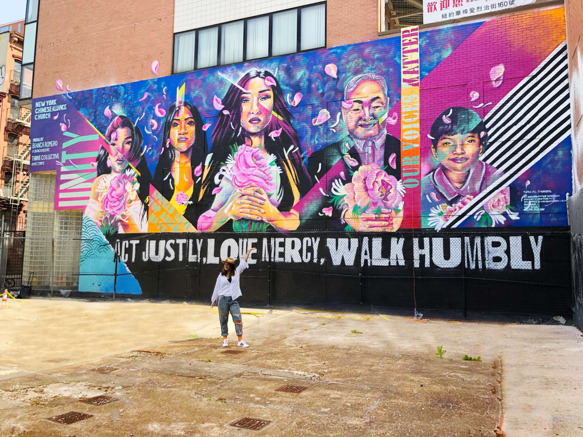 I have two. one is the “spread love stop asian hate” mural thats in lower east side. being korean and spanish and growing up in east village originally I felt very affected by the rise in hate crimes during the pandemic and it reminded me there that wasnt any representation for the aapi community for me growing up so I sought out to paint a mural and take up space (literally and figuratively” for the asian community. I partnered with the NYC city departments, and even had an unveiling event with the NYC mayor and first lady. that mural is now one of the biggest in manhattan, and will remain a permanent fixture.