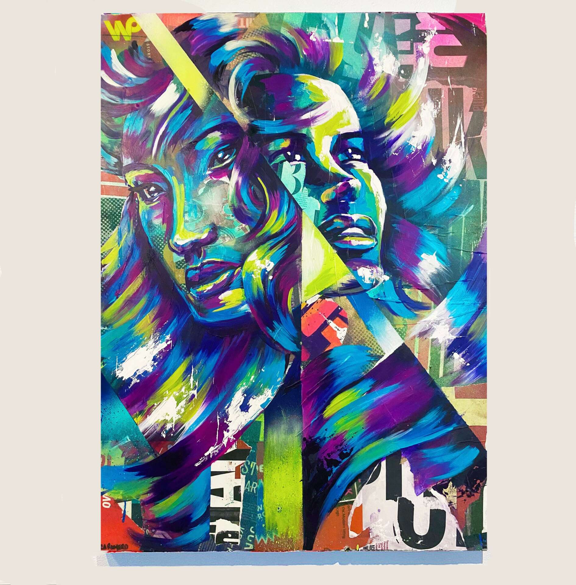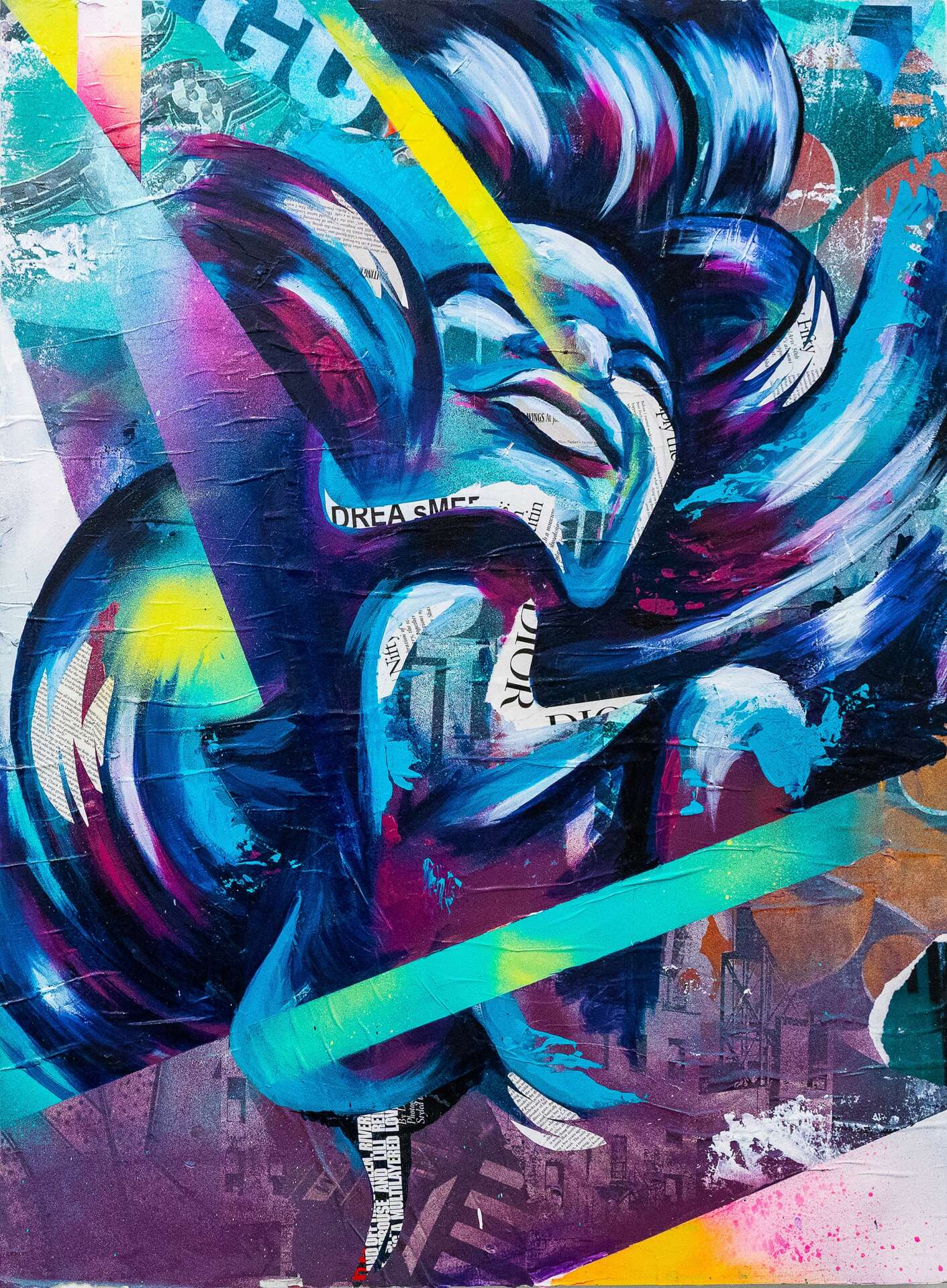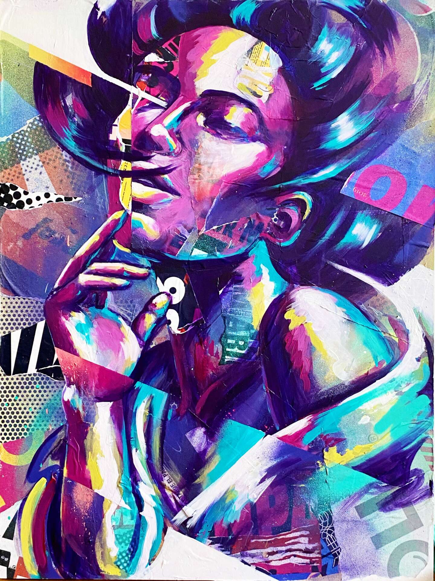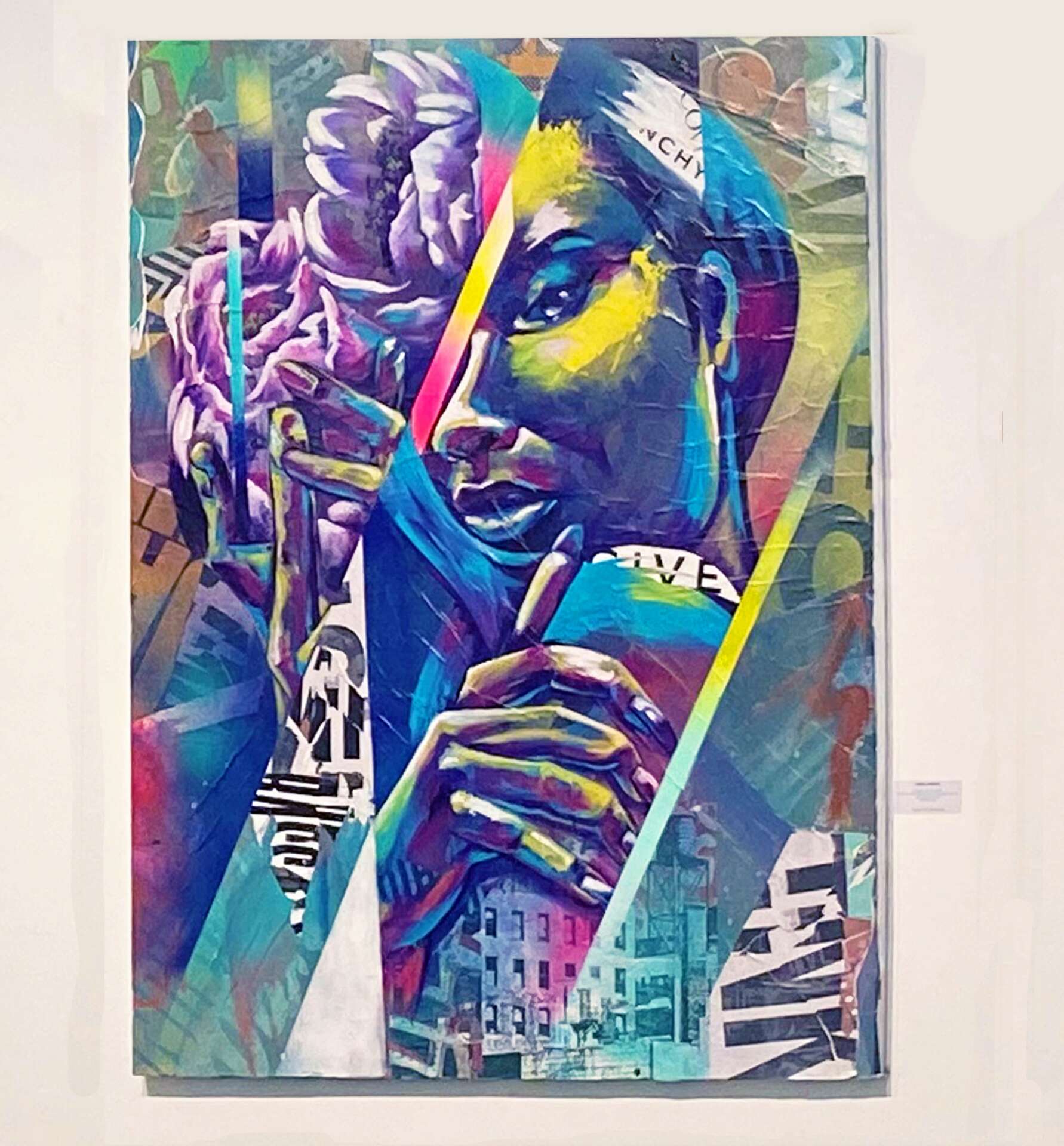 Bianca is a New York City-based contemporary mixed media artist, muralist, and Creative Director. She’s known for her bold and colorful murals and paintings made of hand-cut collaged street posters layered with spray paint, and acrylic.