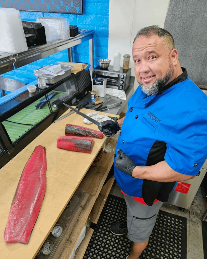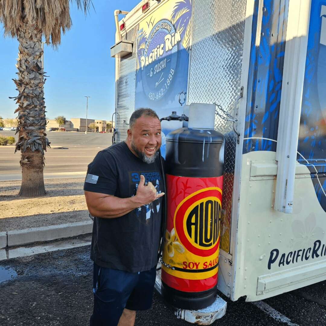 As the oldest of seven children, I started cooking at a very young age. Growing up in Hawaii I had to work at least 2 jobs to make ends meet. So, cooking or working in a restaurant was generally one of my jobs. After my service in the United States Marine Corps, I used my GI bill to go to culinary school in Portland Oregon. after which I stayed in the culinary field since then, working as a chef for various company’s and hotels in Oregon, Hawaii and Arizona. Just before Covid hit my wife and I decided to sell our house and purchase a food truck. The food truck industry is not easy, but we learned it the hard way like everyone else. After a few successful years we were able to get into a brick and mortar which we just started a few months ago. During my time on the food truck, I was able to perfect the island foods that I remember eating when I was a younger man. I am proud of the food that I serve, and I am proud of the culture that I came from. I am very happy to be doing both, bringing the true food and culture from Hawaii to Arizona where I reside.