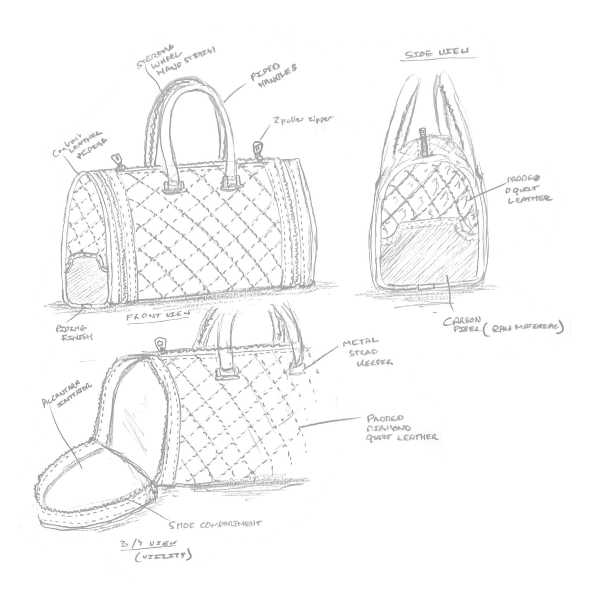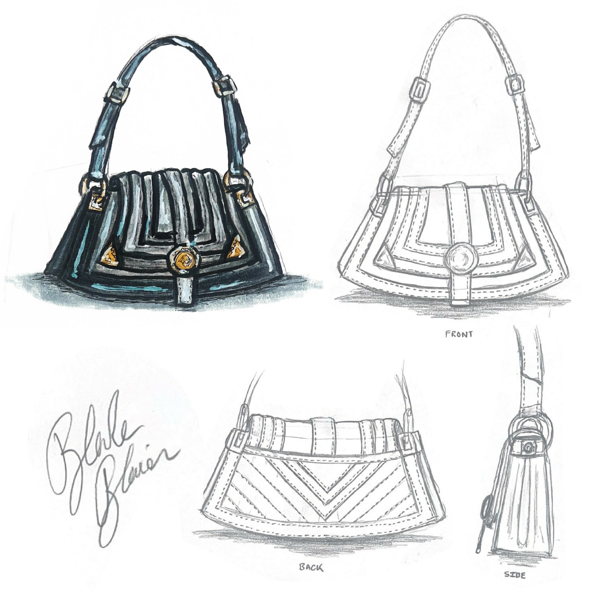 The majority of my learning began as a kid, researching the industry and becoming deeply enthralled by the glamour of fashion and handbags. I was the type of kid who sat at home reading Vogue and watching Marc Jacobs for Louis Vuitton, Dior, and Alexander McQueen runway shows. I learned the majority of my hands-on craftsmanship and technical skills at the Savannah College of Art and Design, where I earned my BFA in Accessories Design. There, I was trained in the patterning process for both handbags and footwear.
