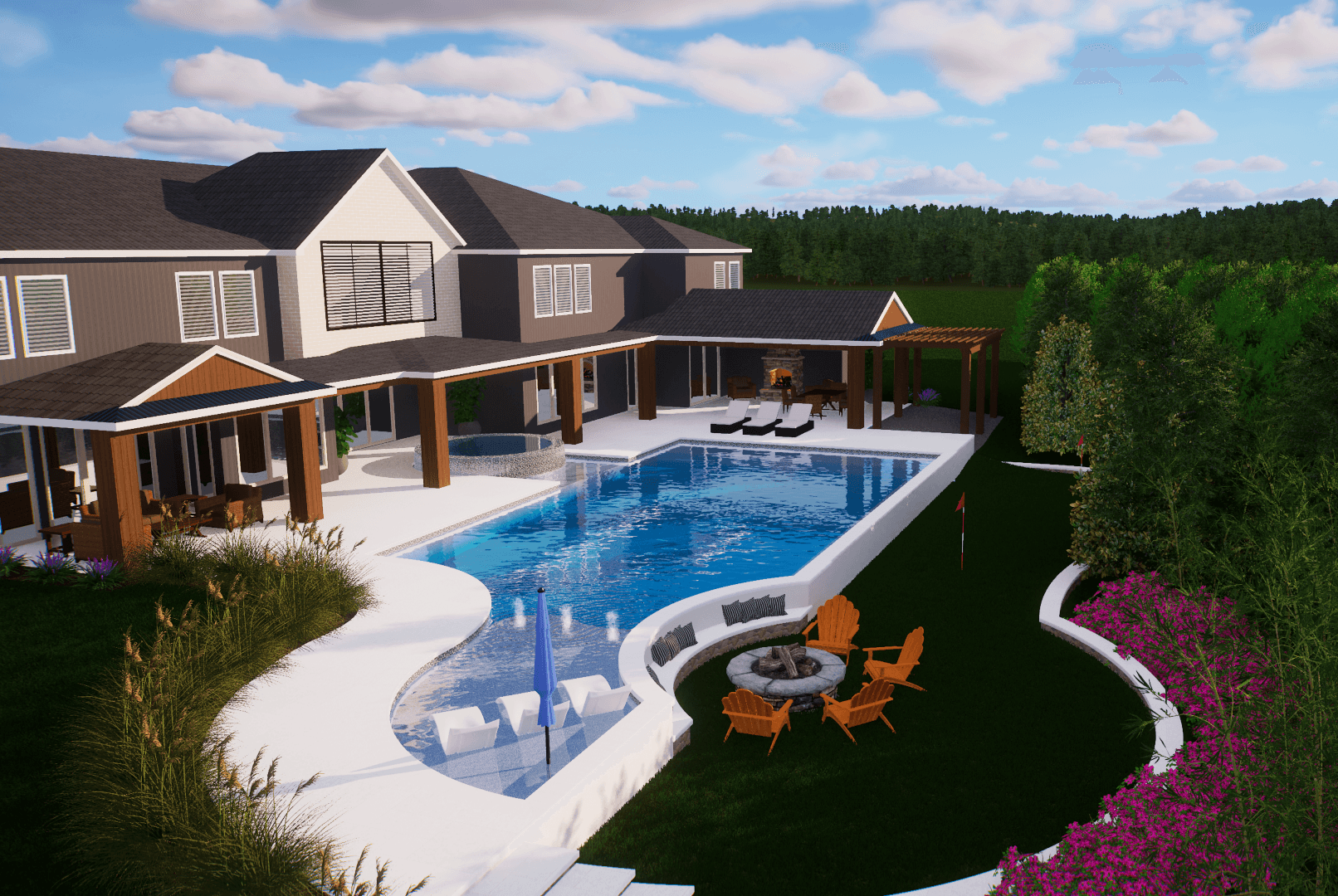 At Aqua 4 Pool Design, we specialize in creating custom, luxury pools and outdoor living spaces that fit seamlessly into the overall design of our clients’ homes. Our services include not only pool design but also the curation of thoughtful funcgtional outdoor living spaces—think summer kitchens extending your indoor space outside, fire pits to warm up and chat in the beautiful fall air, seating areas for connection, and so much more. Every project is unique, and we take pride in offering tailored solutions that align with our clients’ visions and lifestyles.