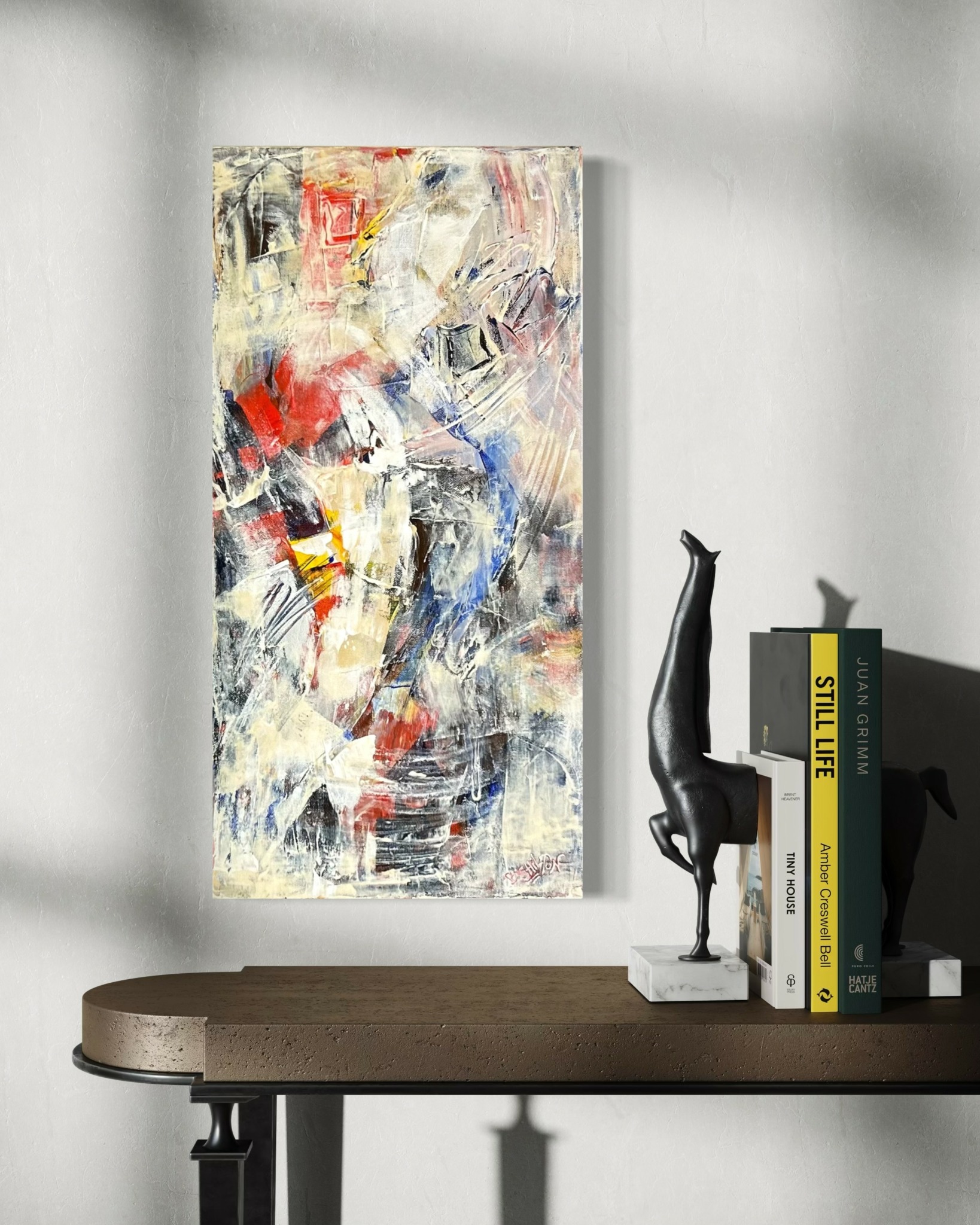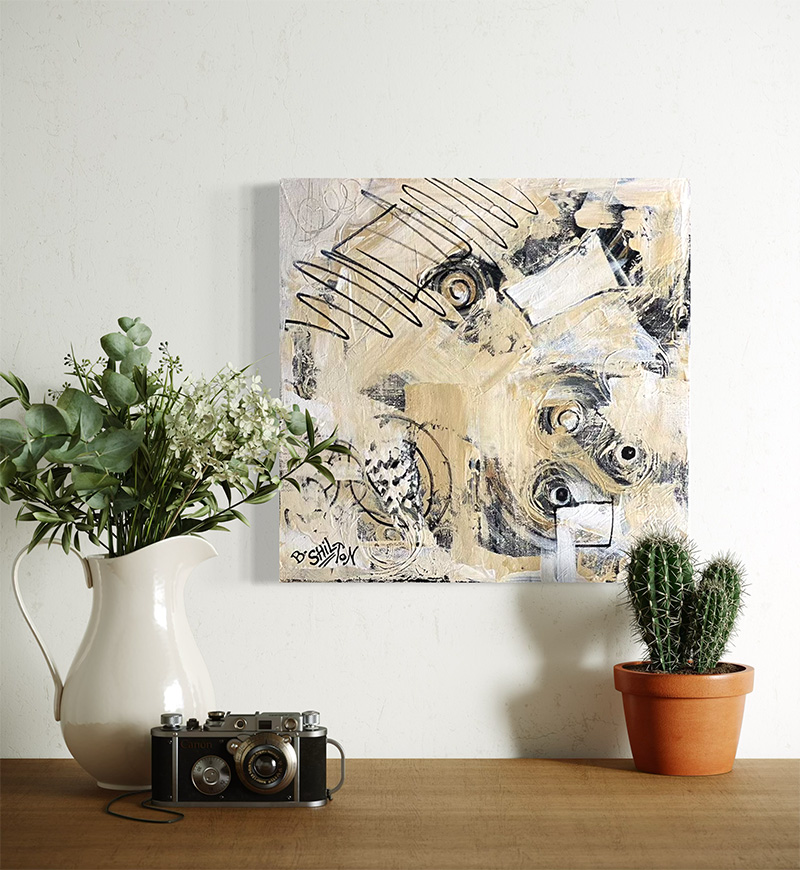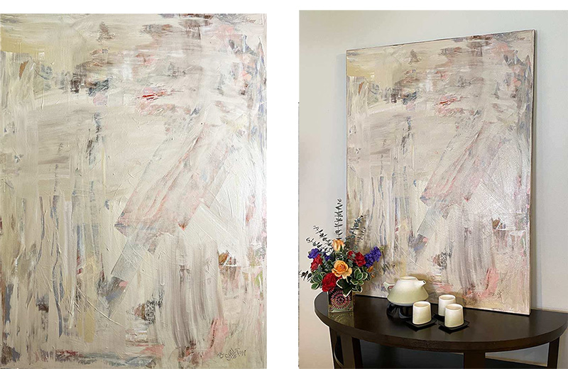 Because I worked in my dad’s upholstery shop starting at age 17, and eventually ran it myself, I understand how art interacts with furniture and interior design. So, when I paint, I think about how the artwork will contribute to the overall feeling of a room. Whether it’s bright and fun or subtle and sophisticated, I create each piece with the knowledge that it’s going to be displayed in someone’s home.