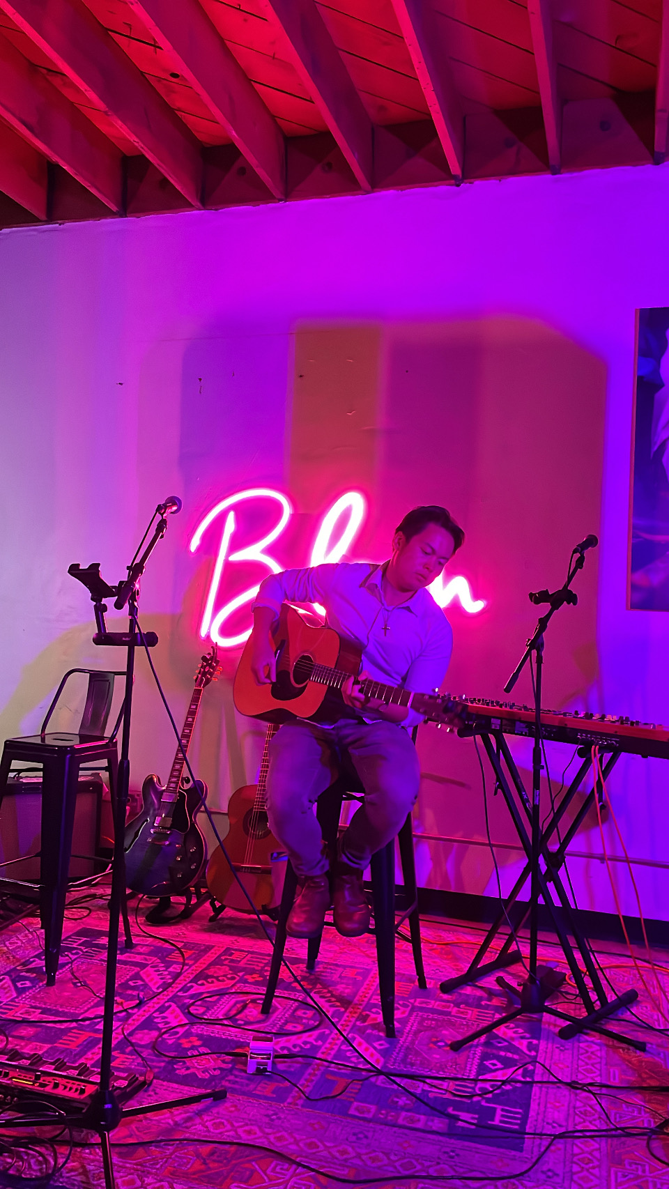 Within a few months, I quickly tapped into San Diego’s music scene and started with the local open mics. I went from a “quiet background guitarist” who had been professionally active for a decade playing for others to what I always sought to become: an independent singer-songwriter writing my own material and breaking out of just being some “ random guy shredding”. I started my artist project (someguyBran) around 2023 and haven’t looked back since.