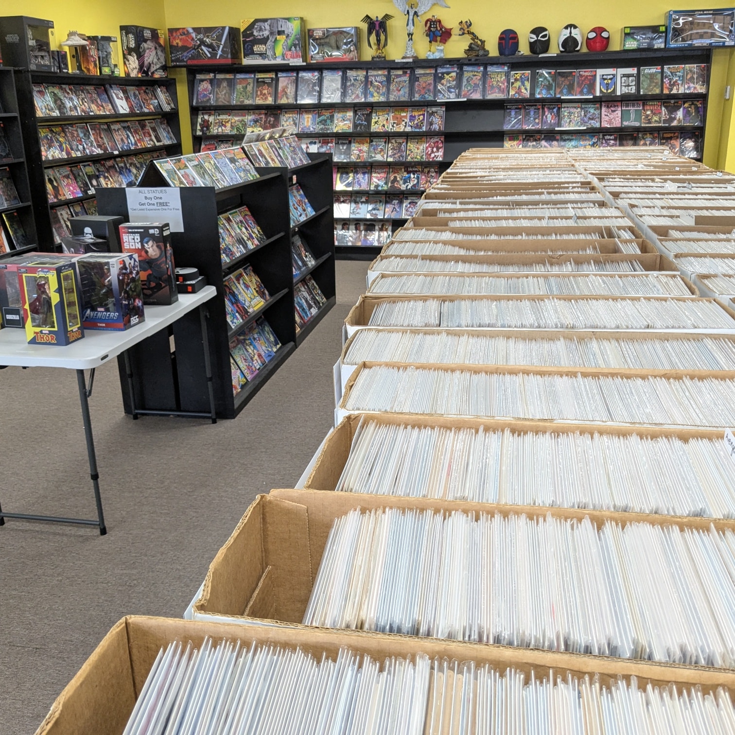 Hastings was a huge part of my formative years. I spent countless hours at the store renting movies (on VHS and DVD), buying music, merch, and books. It was sometime in 2016 that they went out of business. A year later, I got the idea to start selling comics in a local flea market. I was still full-time at my previous job, so this was more of a side hustle. From 2017 to 2021, the business grew from a little glass shelf to our first storefront. It was never my intention to grow the business to what it is today. Honestly, I was just having fun buying/selling collectibles. We had a social media presence that we ran like any retail store would. The crazy part was that we were getting new comics every week while we were at a flea market. 2020 was the year that changed everything for us. The flea market we were in did not close. The only place in town to get comics was our booth (no one was doing anything close to the volume of books we had). Add to that eBay sales, and we were ready to take the next step to our own store.