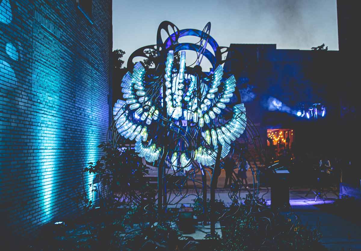 Backing up a bit—I attended the Milwaukee Institute of Art and Design in 2004, where I honed my craft and learned the process of critical thinking. I graduated with a BFA in Illustration, with a strong emphasis on graphic design. Essentially, I was more of a fine artist than an illustrator, and more of an illustrator than a designer—and I still am, regardless of the medium. My interests are vast, and I enjoy experimenting, so the jump from graphic illustration to sculpture didn’t take much. I just needed access to the tools and knowledge. When I had my first artist-in-residence experience at Flux Design here in Milwaukee, my art career really started to take off. My mentor there was the artist and owner of the company, Jeremy Shamrowicz. I worked there in 2015, and in 2016, Jeremy decided to take me to Burning Man. That experience changed my perspective on how I was making art, as well as what communities could be. It reignited my idea for the House of RAD. Then, in 2017, I returned the favor to Jeremy and took him back “home” to the burn.