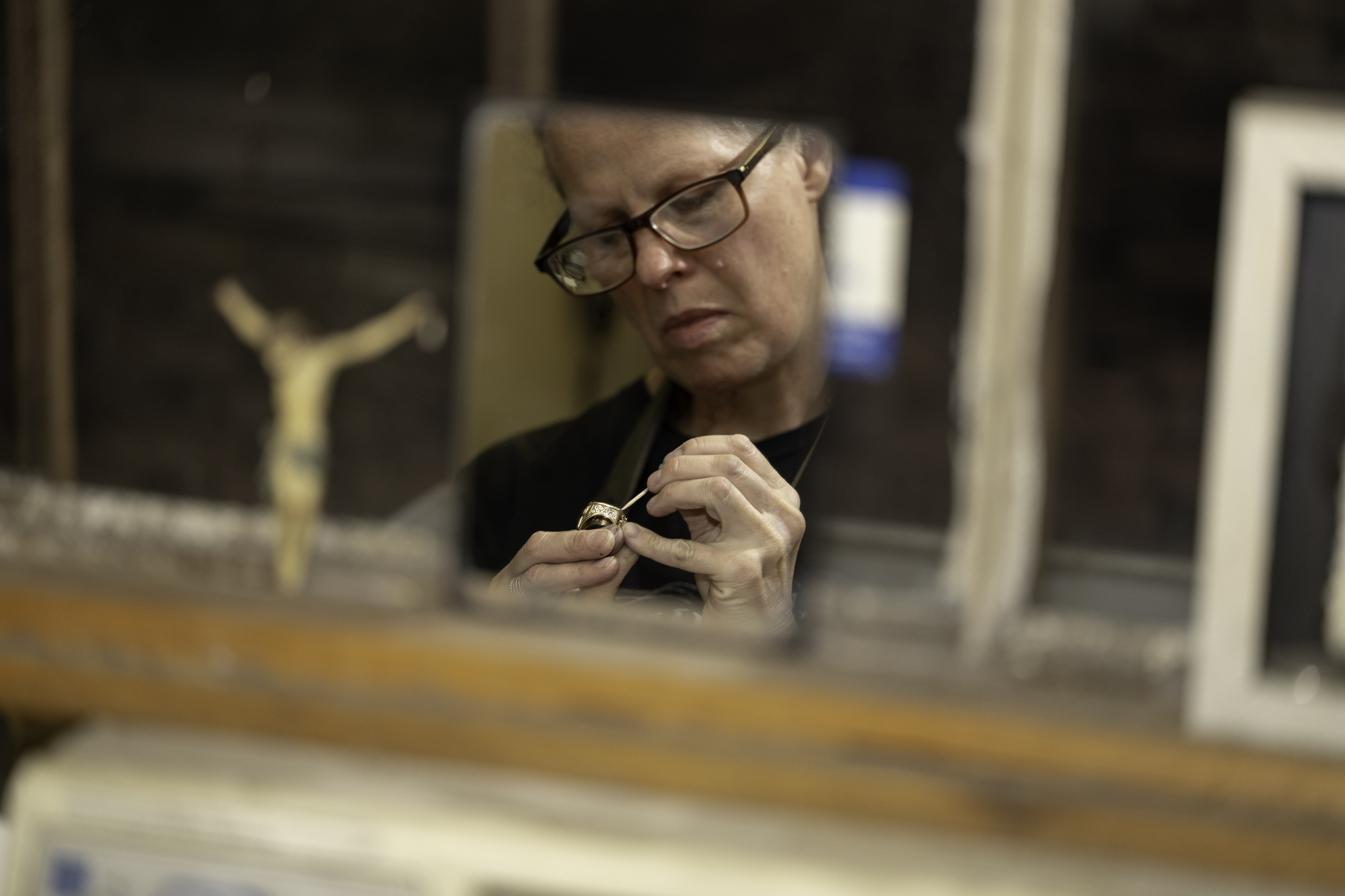 My expenses had quadrupled when my partner and I split, but I had just gotten a very big order that consisted of 35 gold rings with big center stones and diamonds in each. This order was going to help pay for all the expenses in front of me, like a new place for me and my children to live, a lawyer, and my own health insurance. I was doing all the jewelry work myself like cleaning/polishing and setting the stones, as I didn’t have anyone working for me then. Setting stones and polishing is very physically demanding work, especially with the type of settings that these were.