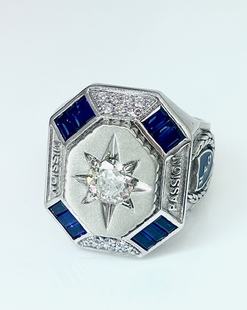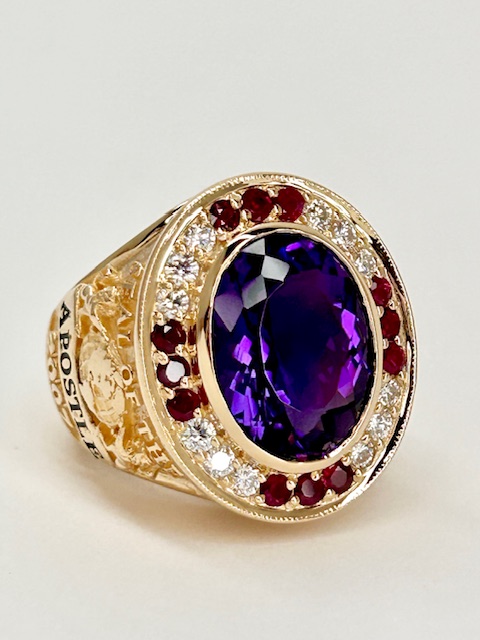 Today, I am a leading manufacturer and creator of bishop rings and related jewelry (also known as “jewelry appointments”). I work with hundreds of clergy members a year, attuned to the protocol pertinent to each office. I can create any piece imaginable and I collaborate with my customers, to bring their vision to life. I take great care to uphold the highest level of craftsmanship. I work with stone vendors from all around the globe, only using the finest materials to make these meticulously-crafted, high-end, heirloom-quality jewelry pieces. My portfolio reflects my ability to incorporate my clients’ heraldry, and other personal images, religious and secular, into unique and beautiful pieces.