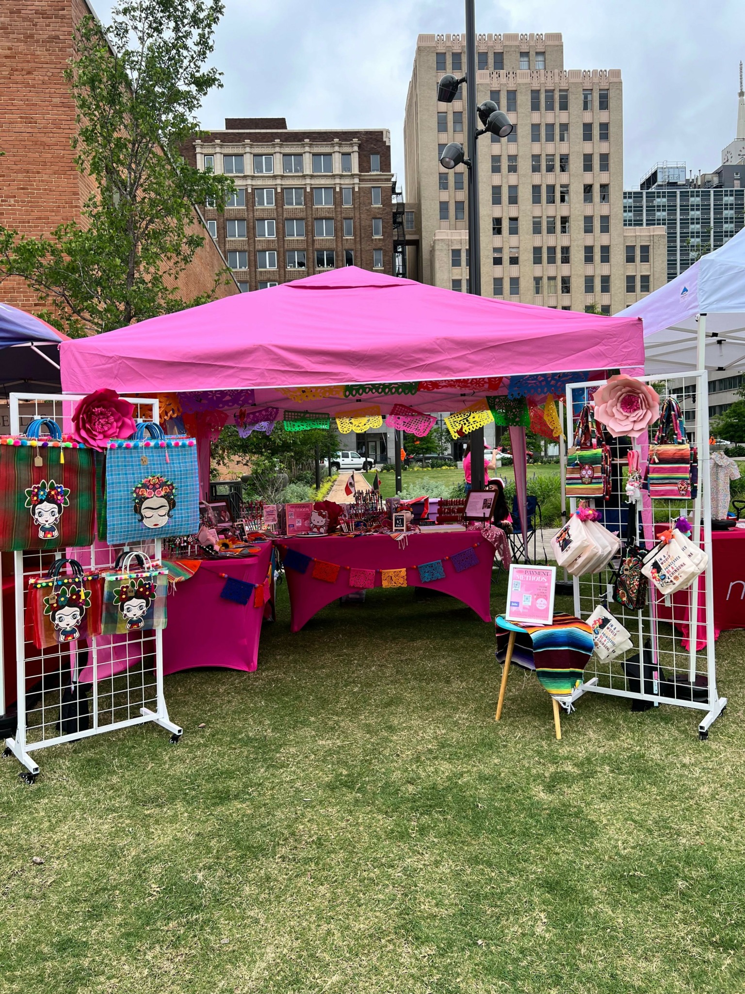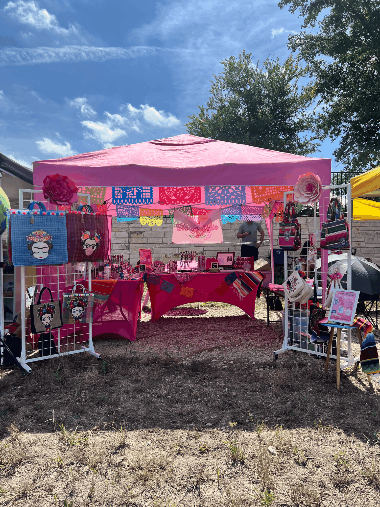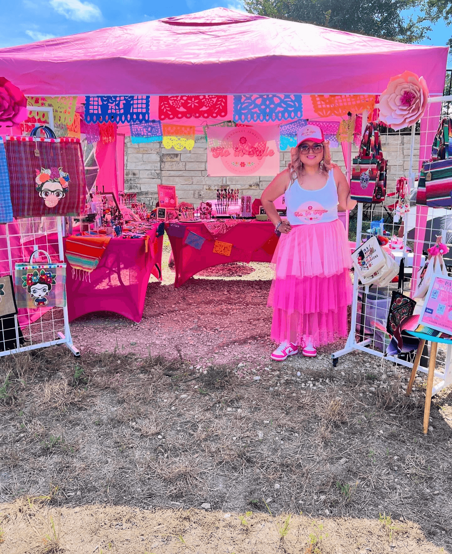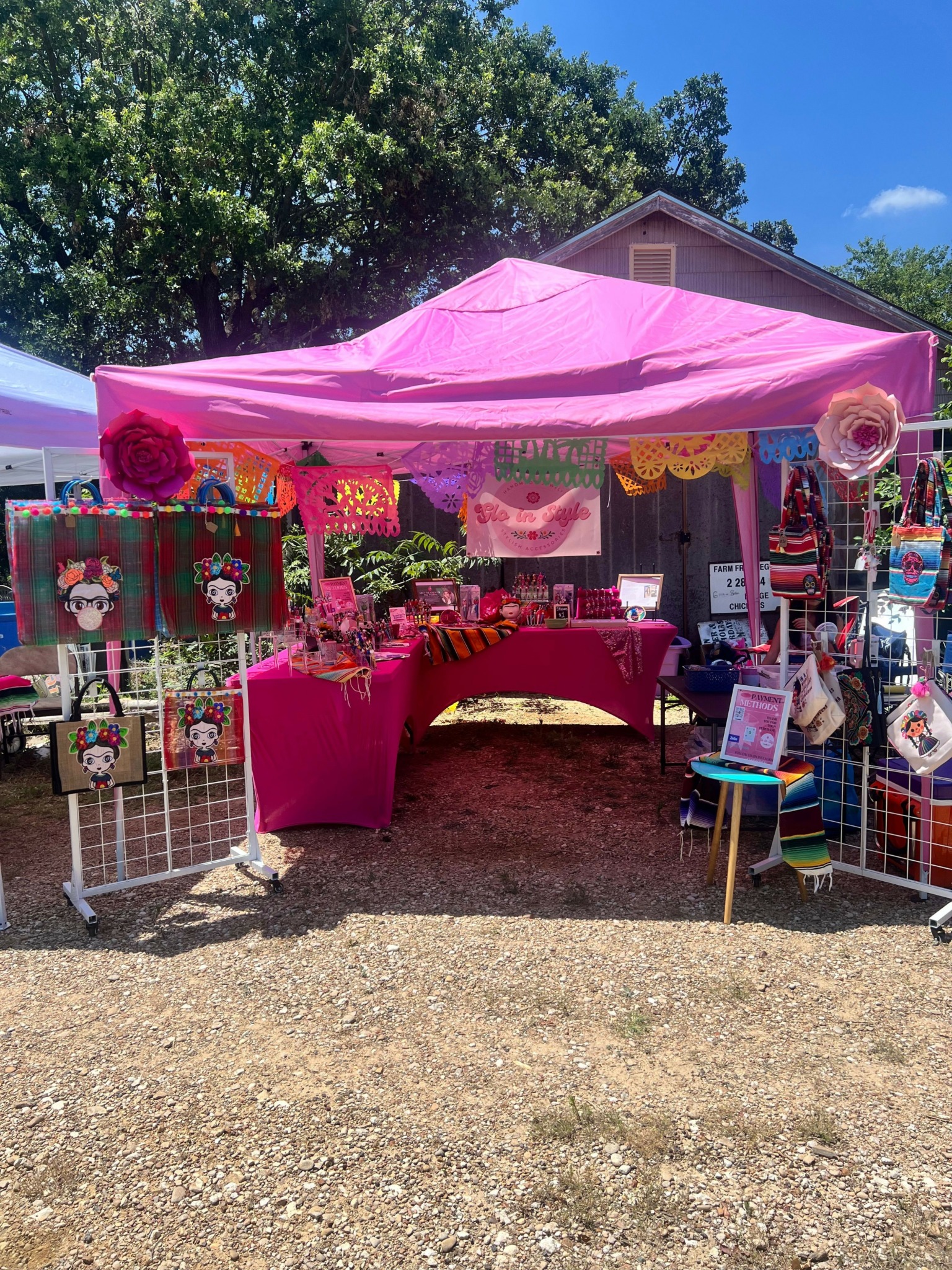 We make focal pens and handcrafted jewelry along with other Mexican inspired accessories such as mercado bags, keychains, etc. I absolutely love celebrating life with color, so in our booth, at events you will see our vibrant pink along with many colors as we want our customers to “Glo in Style” with our colorful products.