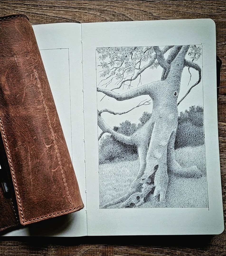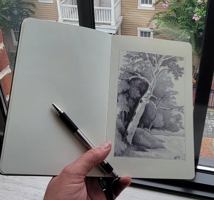 Over the next twenty plus years my art remained deep inside of me, but I continued to plug ahead doing what I felt others wanted me to do. But when a global pandemic changed everyday life and routine, political tensions rose, and our society became more divided I found myself exploring and searching deep for the things in life that really matter. My artistic identity was pounding on the door begging to be let out. So I dusted off the art supplies, picked up a pencil and sketched out what was in front of me, the woods. Of all the essential items in my backpack my sketchbook and pencils were included. The more I sketched the deeper the desire to create. It became a hunger, a knot would develop in my stomach if I went more than a day without drawing. A sketch a day kept the frustration away.