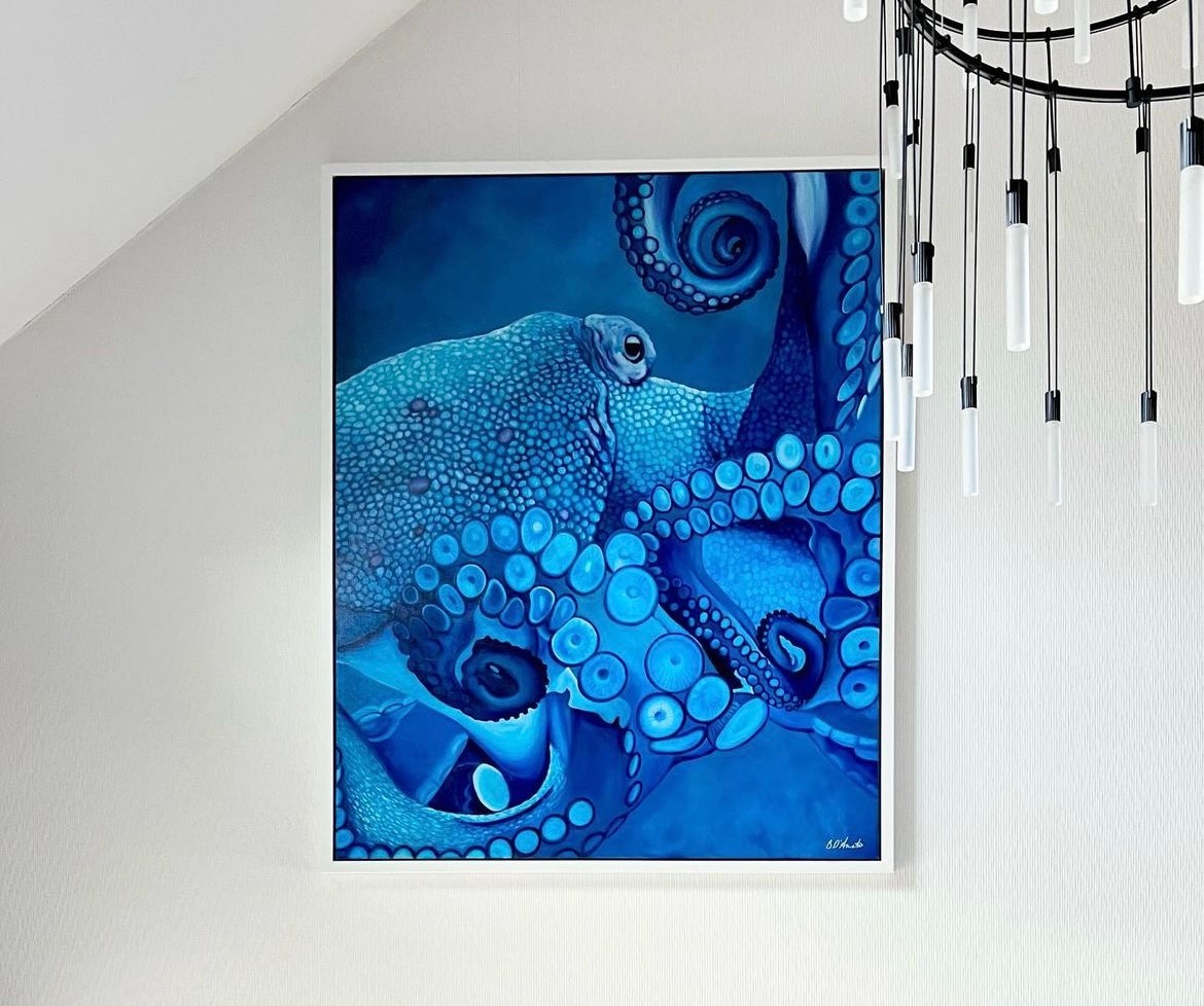 I have loved art and creating ever since I was little. I grew up drawing and doodling in all of my classes. When I went to college, I wasn’t quite sure what I wanted to do. My parents were very supportive and told me that I should do what I love. I decided to major in fine arts. I was really only used to pencil sketches at that time, but quickly fell in love with painting in one of my classes. I started with acrylics which was really nice. The following year, I took another painting class and the professor challenged us to only use oil paint. It was so different from from painting with acrylics and I found it much harder to figure out. I wanted to get better at it though, so I took a class that this professor offered every single semester until I graduated and was fully confident in that medium. After graduating, I had no idea how to find a job as an artist, so I ended up becoming a server for a few years. I was not happy with that and knew I wanted to be an artist. I found this artist Andrea Ehrhardt on instagram one day, who offered a course called the Artist Academy. She’s just a few years older and wanted to help struggling artists learn the business aspect of the field so that they could become full time artists like her. It was one of the best investments that I made to help me move forward as an artist. I started posting more frequently on instagram and would do a bunch of pet portraits for people and then expanded and would paint landscapes and wildlife. I began doing murals as well which helped me get noticed more and more. Slowly but surely, my business as an artist has picked up and became my main source of income. I am able to create different series of work that I love and still take commissions. I think it’s important to be a part of a community as well since being an artist can be very lonely at times. I started getting involved in art fairs and selling original work there. I am very proud of my growth as a business owner. I always want my client to be happy, so I always make sure we are on the same page with commissioned work, so I can help make their vision come to life. As for my own original work, a lot of people will notice I love to use the color blue in most of my paintings. I want my viewers to feel a sense of peace and tranquility when they view my art.