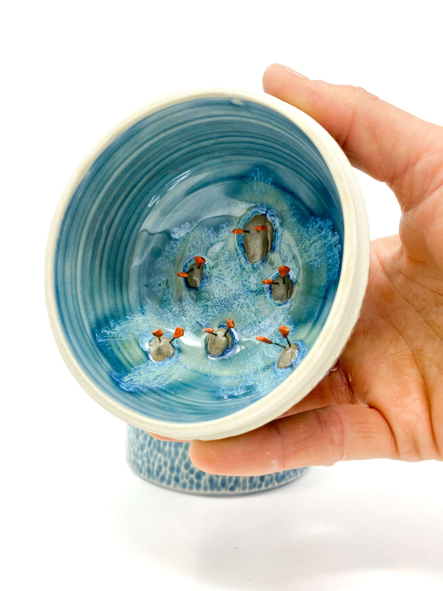 I have dabbled in a variety of mediums, but ceramics captured my heart and allowed me the deepest connection with nature, literally sculpting mud into art. Over the years my art has evolved and morphed, similar to that of a meandering river. My most recent body of work incorporates tiny animal sculptures nestled into nooks of mugs, bud vases, and perched atop bowls. My art allows me to share my love of nature and connect with similar, like-minded individuals. The more time I spent outdoors in nature the more inspired I become.