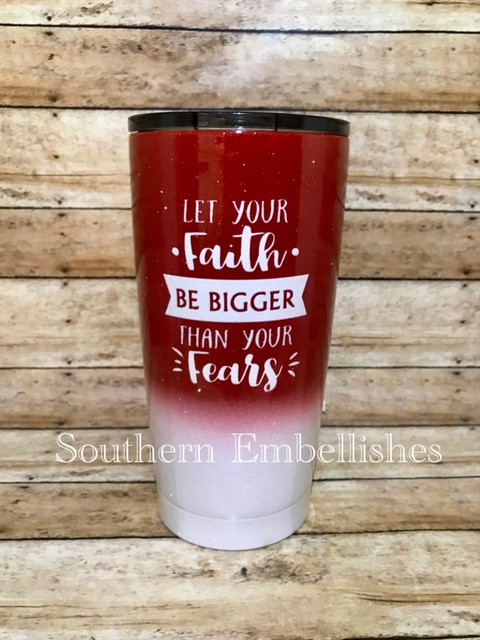 So, we borrowed $500 from my parents, bought some cups and got to work! We made a few generic designs and set out to the Waldo Flea Market. We left that day with $300 in orders for custom tumblers. It was a blessing more than I can explain at that point in our lives. From there, our little business was born, and we began doing different sporting events, craft shows, and festivals.