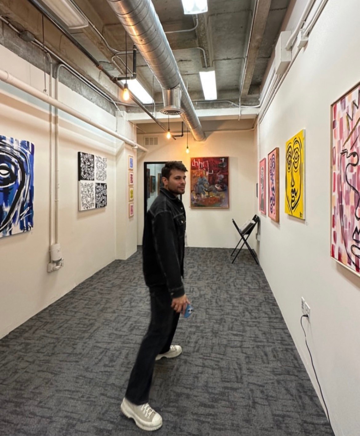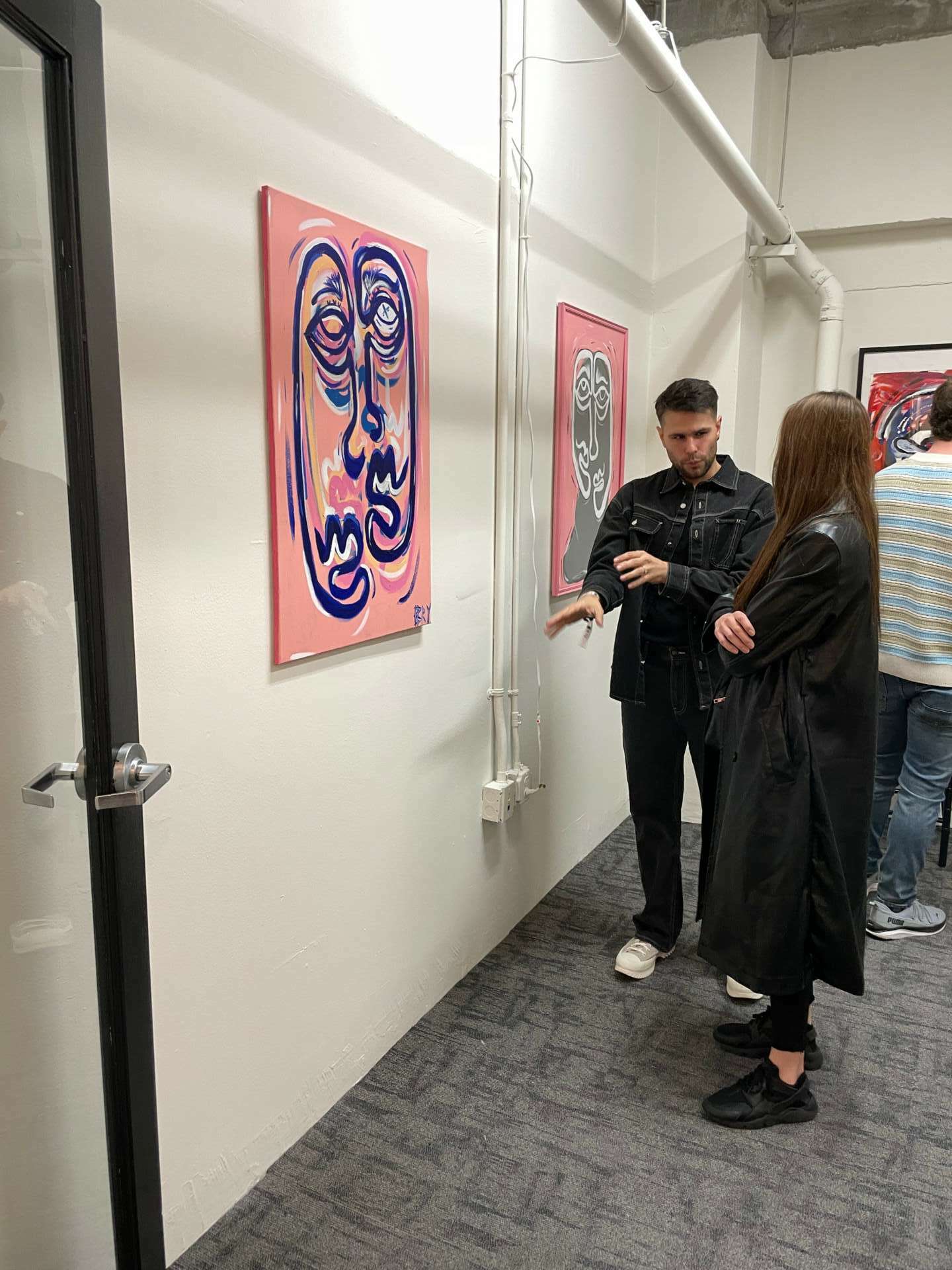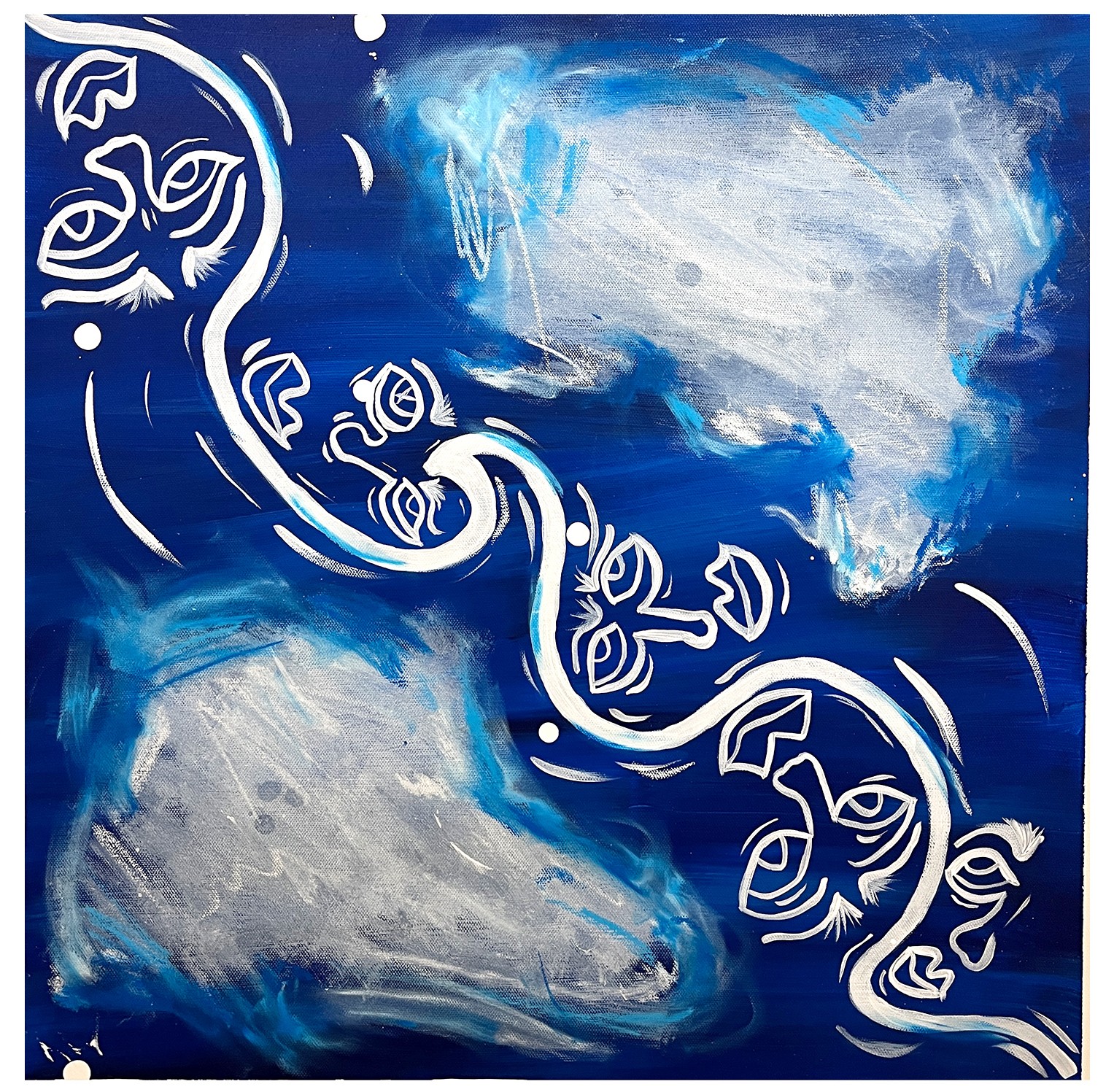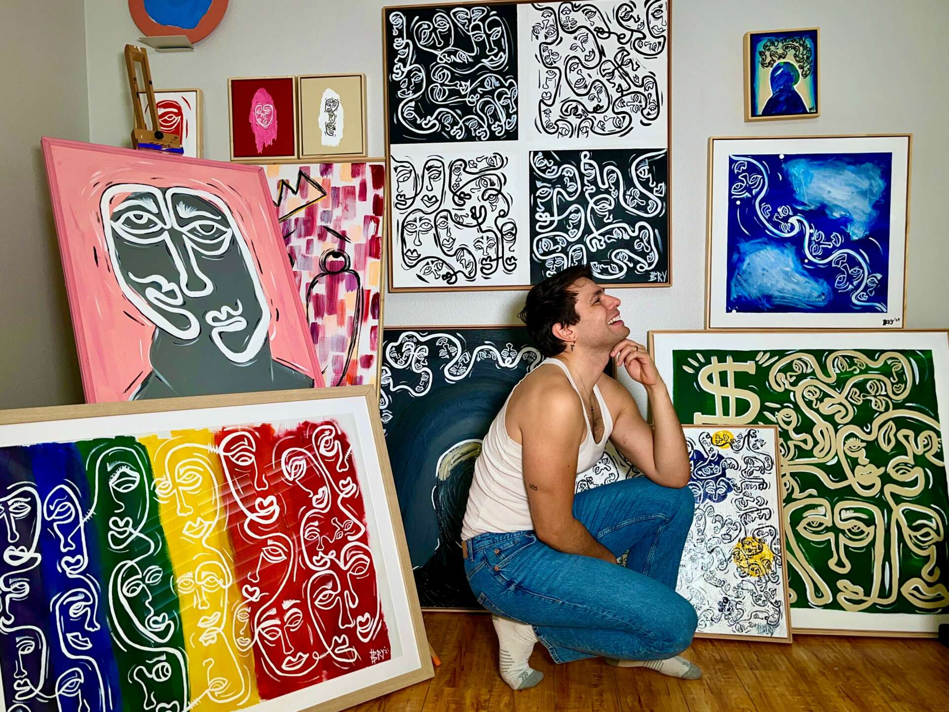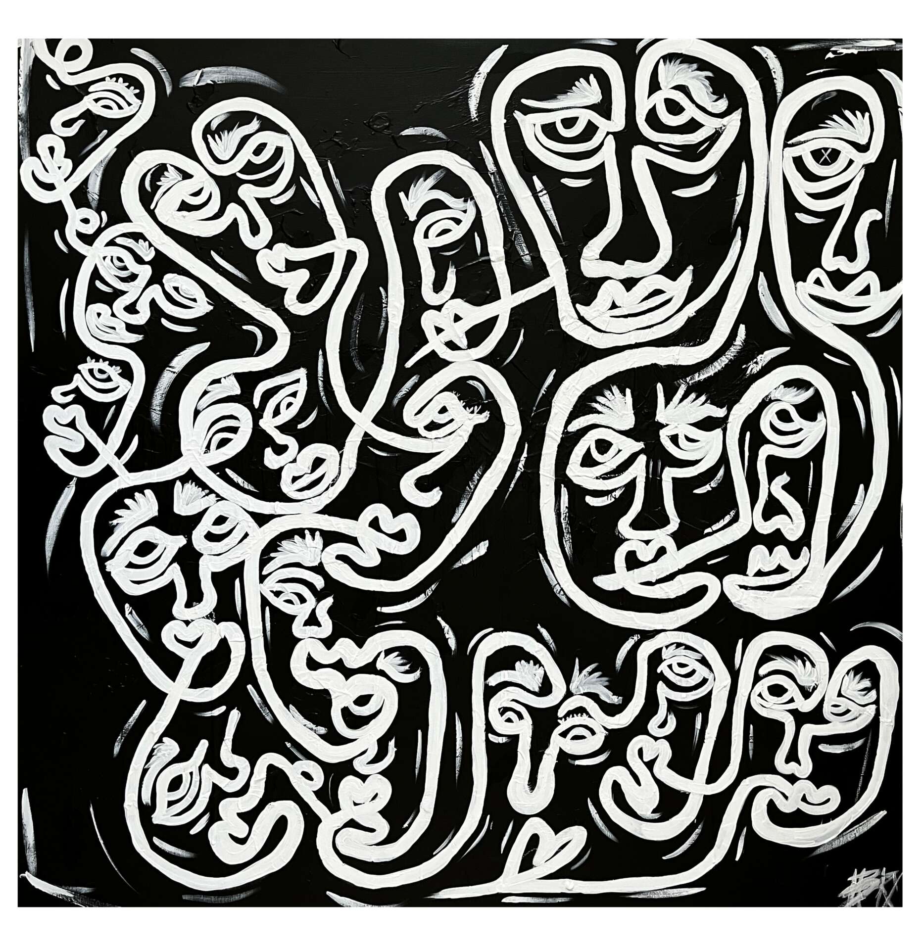 To be honest, I am not trained in art or art history. However, I have always been in love with creating and observing art. I remember when I was little my dad would let me draw tattoos on his back. They were just squiggles to my dad, but I saw otherwise. My interests peak as I entered my teens and I would take every art class available to me. Photography, sculpture, anything that would allow me to create. As I got older, life got in the way and I didn’t truly return to my love of painting till a few years ago. Pre pandemic is was doing abstract art in the vein of Pollock, one of my favorite artists. It wasn’t till lockdown that I really fell back in love the the squiggle patterns I use to draw on my dad. I began using a single line to draw a chain of abstract faces. I think in that time of reflection, I was able to channel my grief and depression into these faces that felt like little self portraits.