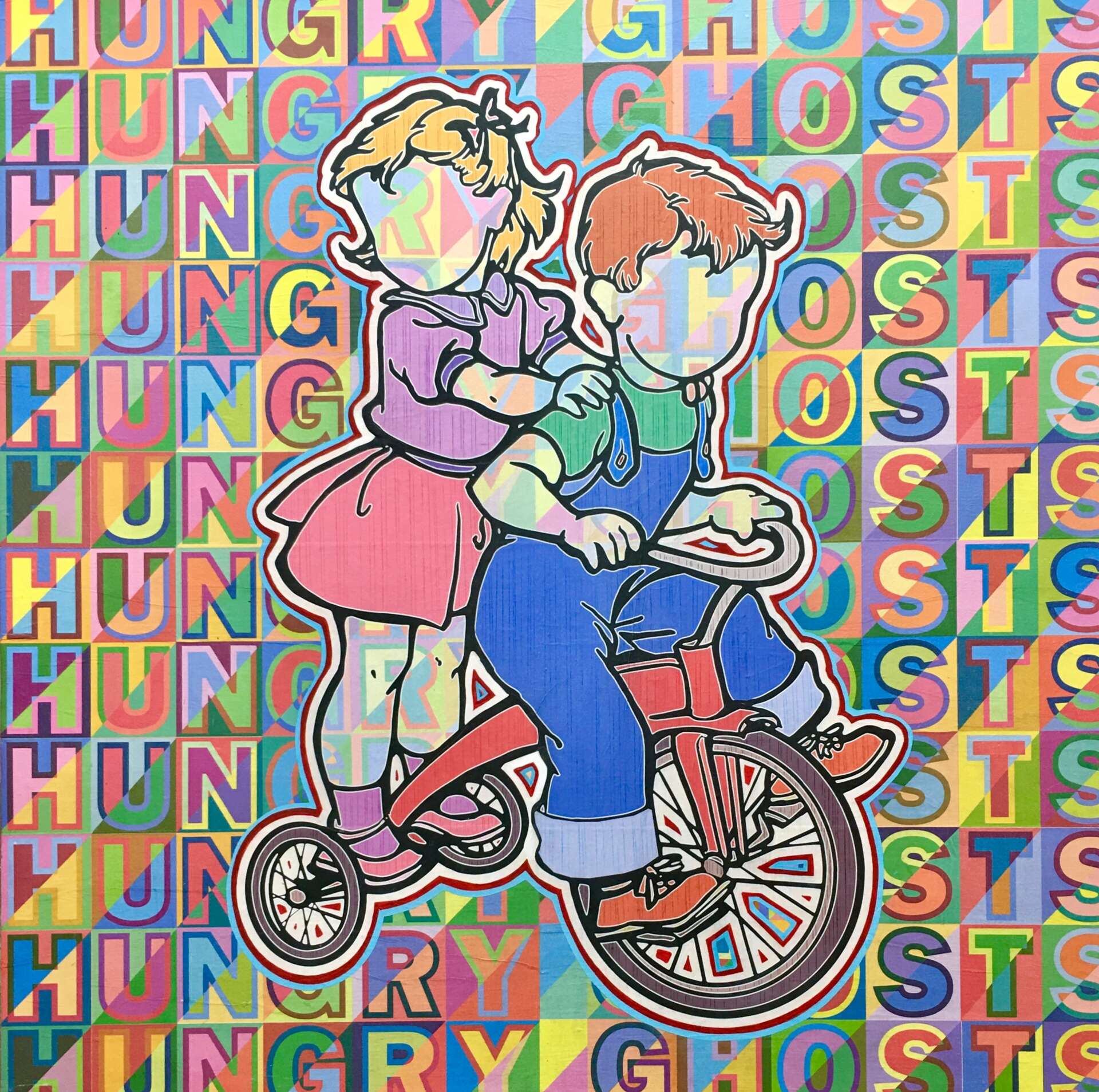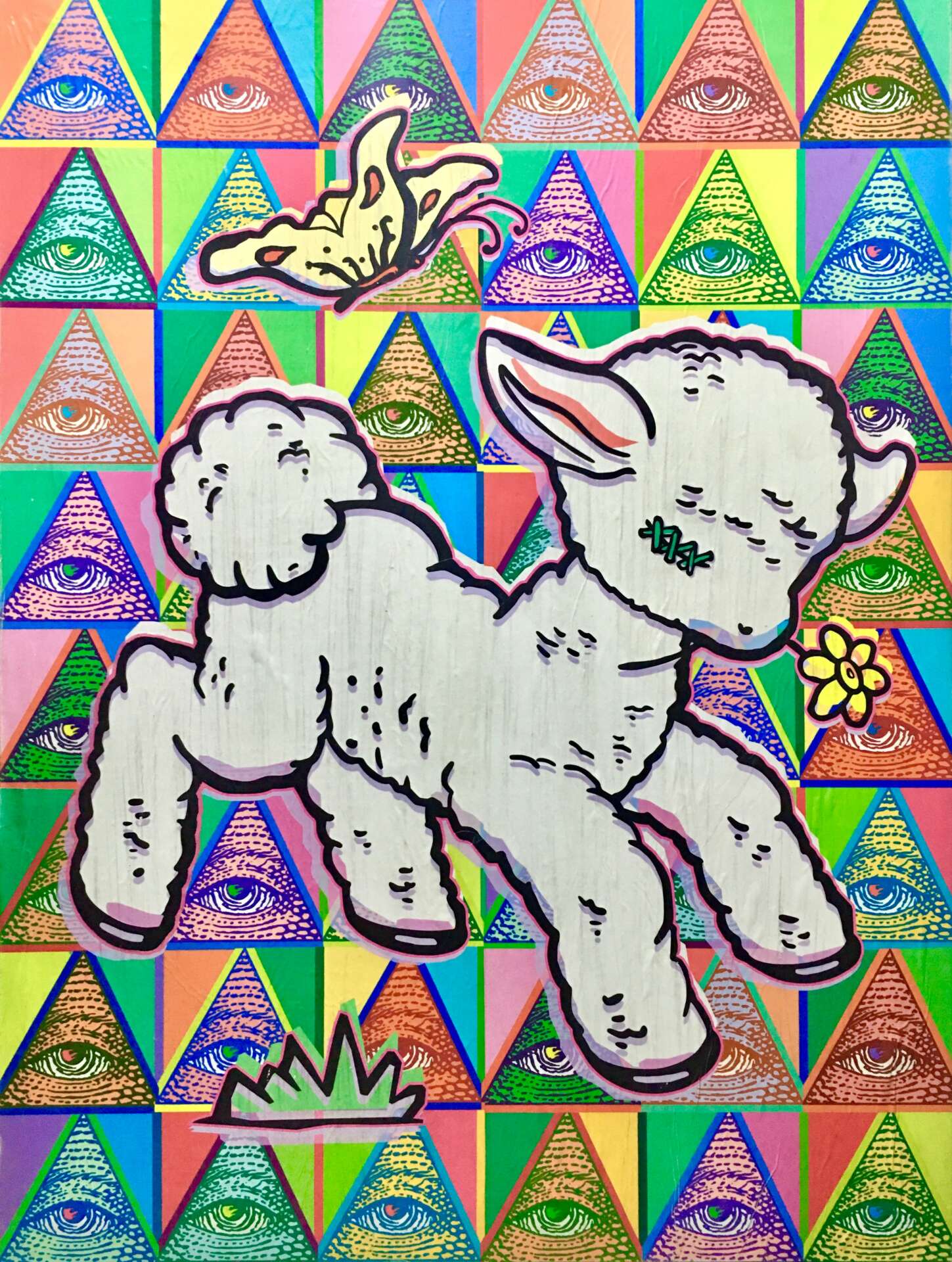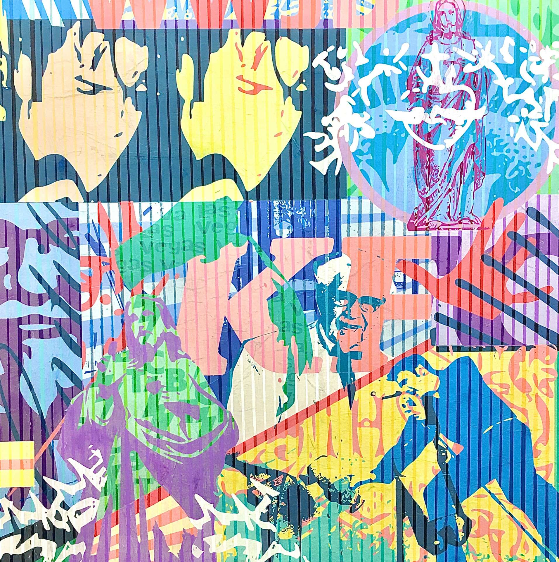 It has been a strange journey to get to where I am, and I feel like half of my life has been spent grieving the death of parts of myself. I was diagnosed, in 1997, with bilateral brain tumors on my balance nerves. My first brain surgery was in 1998 and took half a day to complete. They removed a tumor over 6 cm in diameter on my right side. and the brain surgery left me with permanent right-sided facial paralysis, having to relearn balancing through sight and feeling, and loss of coordination on my right, and dominant side. I woke up to a life that had changed profoundly and, even 25 years later, am still transitioning and dealing with consequences from that first surgery. As an example, just a few weeks ago I had to have my right eye sewn permanently half shut because of a deep gash in my cornea that wouldn’t heal and was taking my vision quickly. I have not been able to blink my right eye naturally since that first whopping brain surgery, and my vision in that eye, which was good at the time, had deteriorated to 20\400. This recent procedure, I am happy to say, has saved my vision (at least for now) and has even greatly improved it to 20\60 just a few weeks after. Whew. This is a huge gift to a deaf person, and especially to a deaf visual artist, so I am extremal grateful for that and it makes sporting the “Popeye” look from now on worth it. The tumors and brain surgeries to deal with them ended up taking my hearing fully. My situation has been an extreme test of my attitude and perception. It has been a test of perseverance, and there have been many high’s and some deep lows, and it continues to cycle like that. It’s been emotionally exhausting at times but I think I’ve learned a lot from this and it has definitely made me humble and appreciative of what I can do. I feel my process with visual art, because I had to learn how to paint and draw with my left hand, was a little slower than it would have been if I didn’t lose the drawings skills already in place via my right hand. I think this is why I slowly gravitated towards using mixed media, to allowing myself to use whatever skills I had to in order to get the job done. I worked for over 20 years creating logos, and realized that is a lot of time working in a particular discipline so I decided I should take advantage of it and use my digital art to create hybrid hand-painted/stencil/digital work. That seems to be where I am at now, but am open to transitioning as things show themselves too. I think that it is important as an artist, to push it and try new things but carry with you the things that work too.
