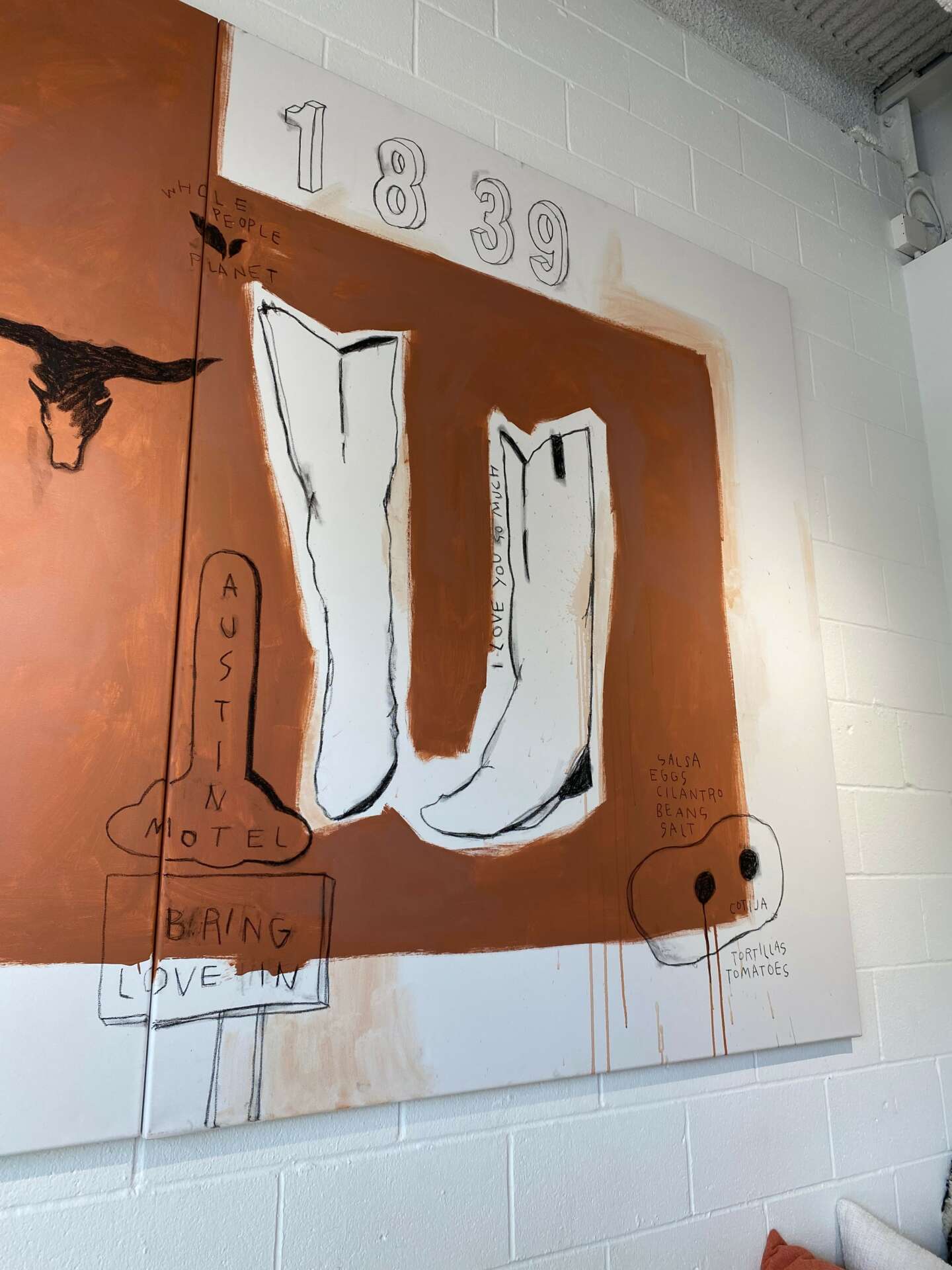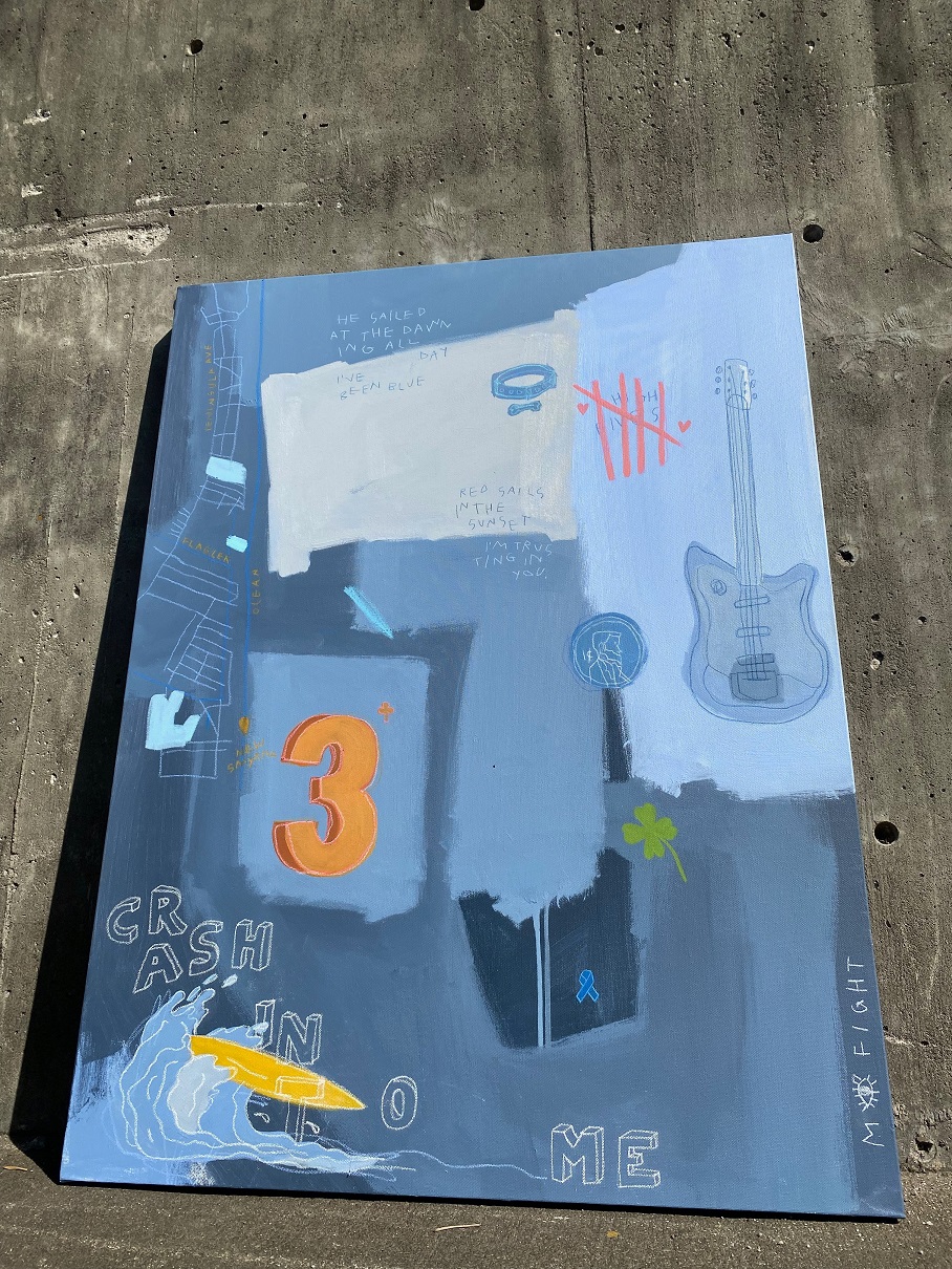 So my most recent artworks have been a sort of story-telling channel. I take a handful of questions for my clients about the most meaningful and important details to their lives, relationships, and stories and I arrange them in an abstract way through elements, colors, words, and symbols to create a painting that is individualistic and full of meaning! Using acrylic paint, pastels, colored pencils, and other materials, each commission is 100% unique and special to each owner but also abstract enough to pull others in.