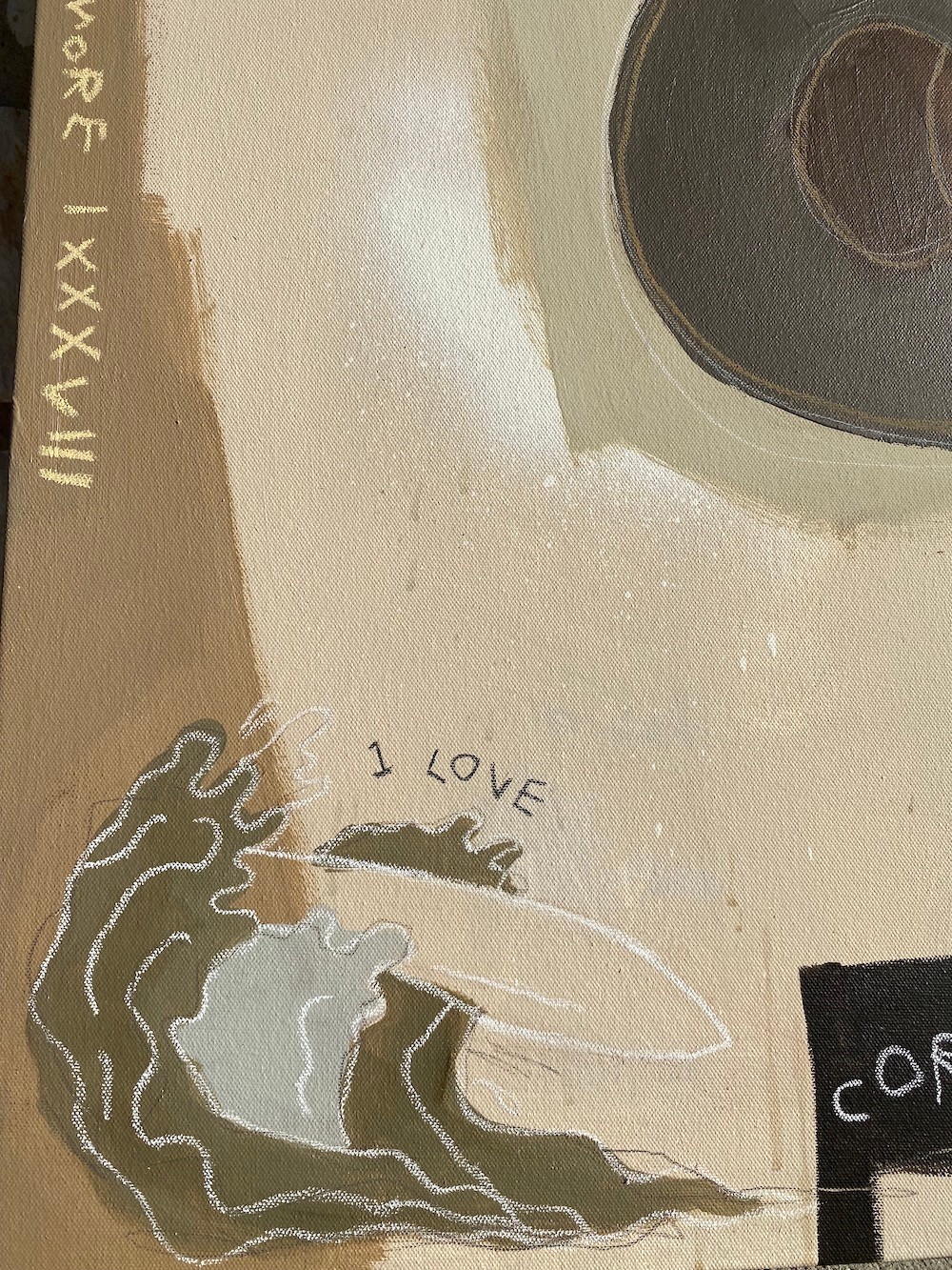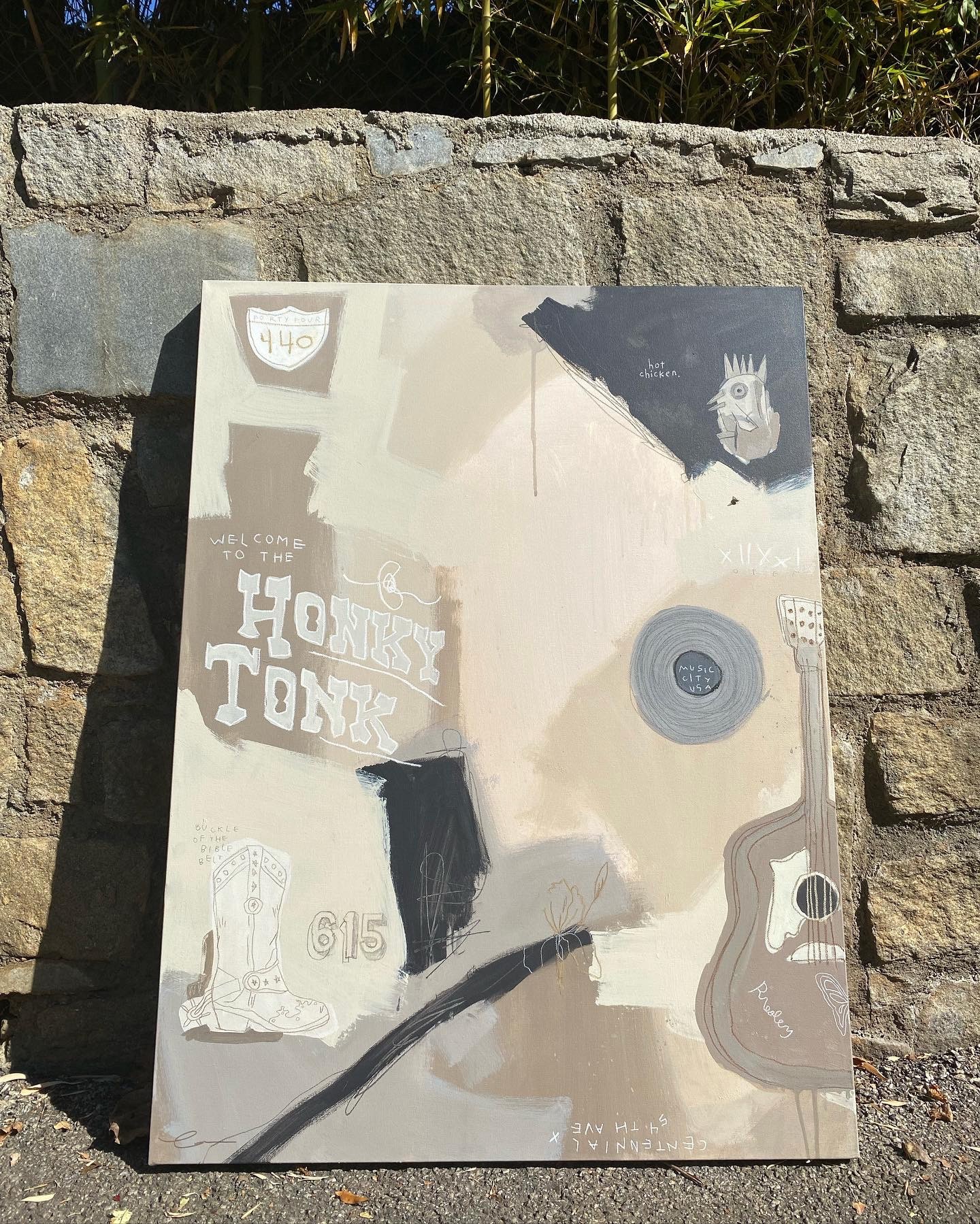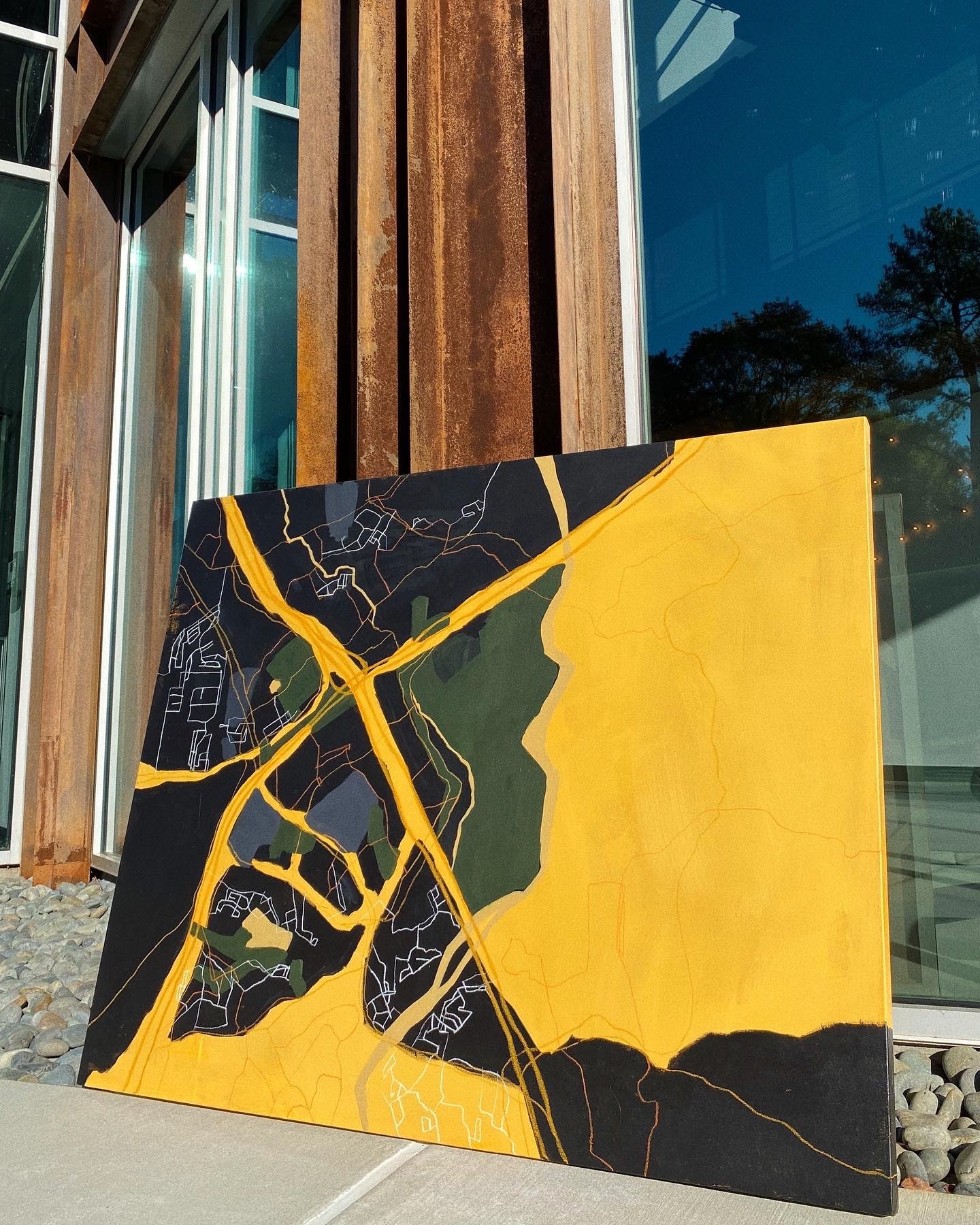 So my most recent artworks have been a sort of story-telling channel. I take a handful of questions for my clients about the most meaningful and important details to their lives, relationships, and stories and I arrange them in an abstract way through elements, colors, words, and symbols to create a painting that is individualistic and full of meaning! Using acrylic paint, pastels, colored pencils, and other materials, each commission is 100% unique and special to each owner but also abstract enough to pull others in.