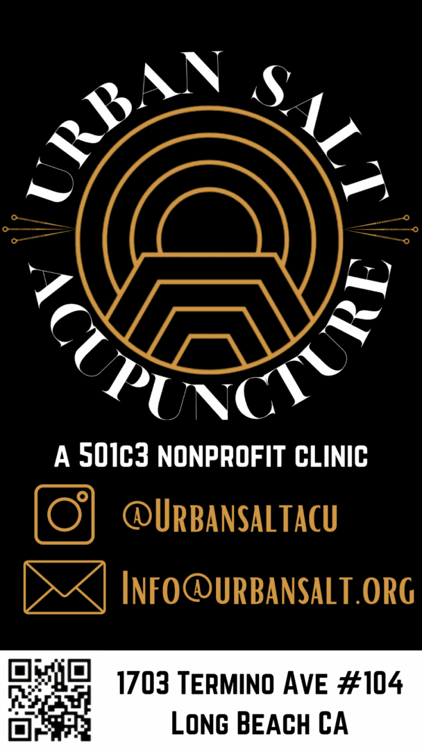 Urban Salt Community Acupuncture Clinic provides a safe space to receive care affordably, no matter your background or health concern. We are here to serve the community in a real way, providing care and alternative health education classes for our community in Long Beach, CA. Thanks to the support we’ve received, we are able to provide care over 5 days per week, and 3 classes per month- You can find us on Instagram @urbansaltacu, urbansalt.org, and Meetup for our events. We are happy to have you.
