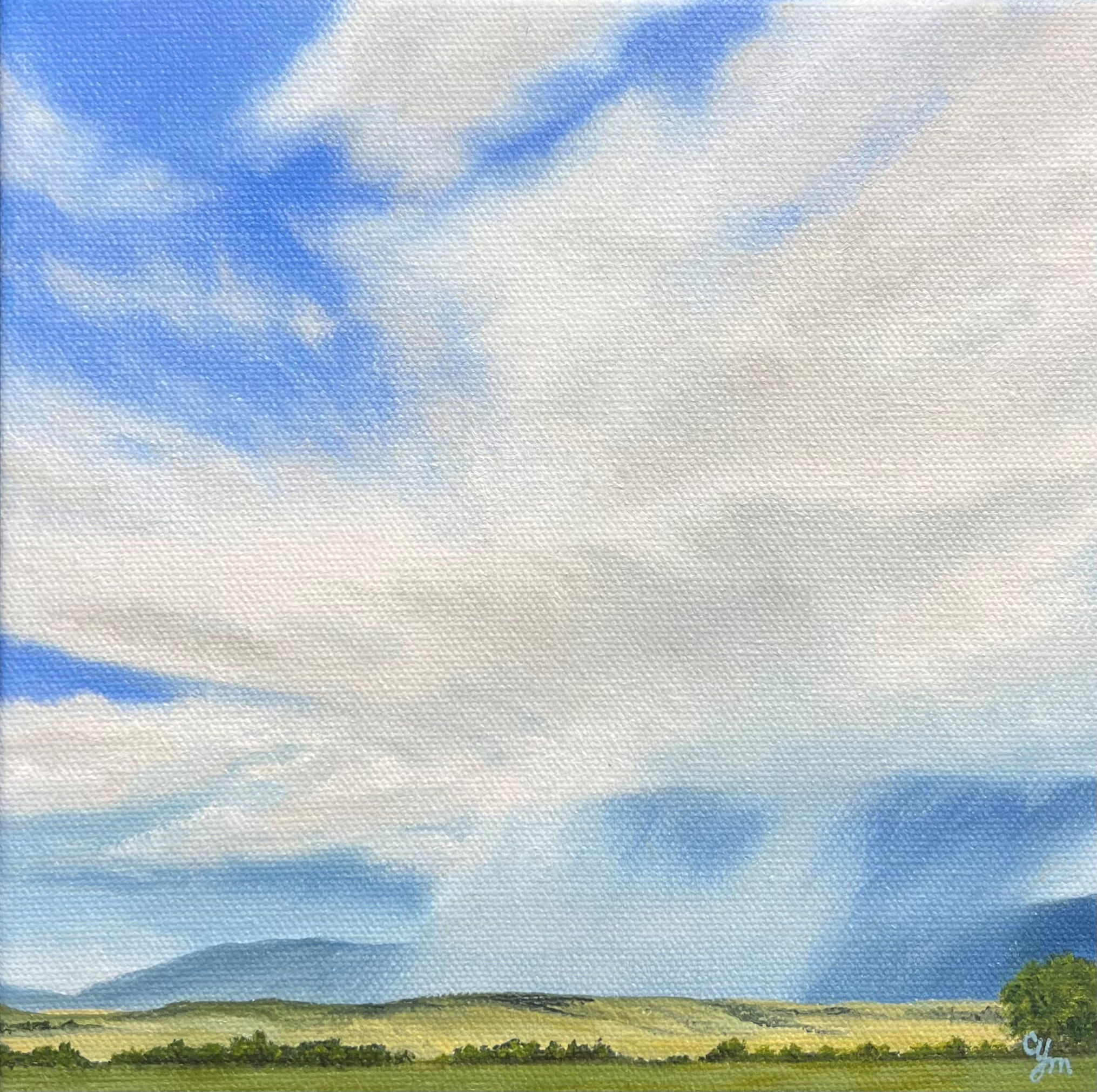 I am a part time fine art landscape painter, who is also working actively in a full-time capacity within our family’s water treatment business. My plan is to return to my painting full time in the future, but in the meantime, I turn to my art for the freedom it brings my spirit! When painting skies, I feel free. Free to trust the process, free from worry about how it will all turn out and free to let the pressures of life slip away. Being born and raised in the Gallatin Valley in Montana, it is no mystery why the landscape is enmeshed in my soul. The beauty and grandeur of our evocative skies beg to be captured by my brush. I seek to represent the emotions of light and color in our vast skies and the cast shadows on the land. My art grows out of the wide, open spaces, and the desire to move the viewers to pause, reflect and seek moments of observation in their own surroundings. My hope is to create a tangible Montana memory with my work – providing a sense of place, peace, and reflection – to imprint a deeper understanding of that moment before it slips away. When my art finds a new home, I hope that it is because the collector knows what it feels like to have Montana woven into their hearts.