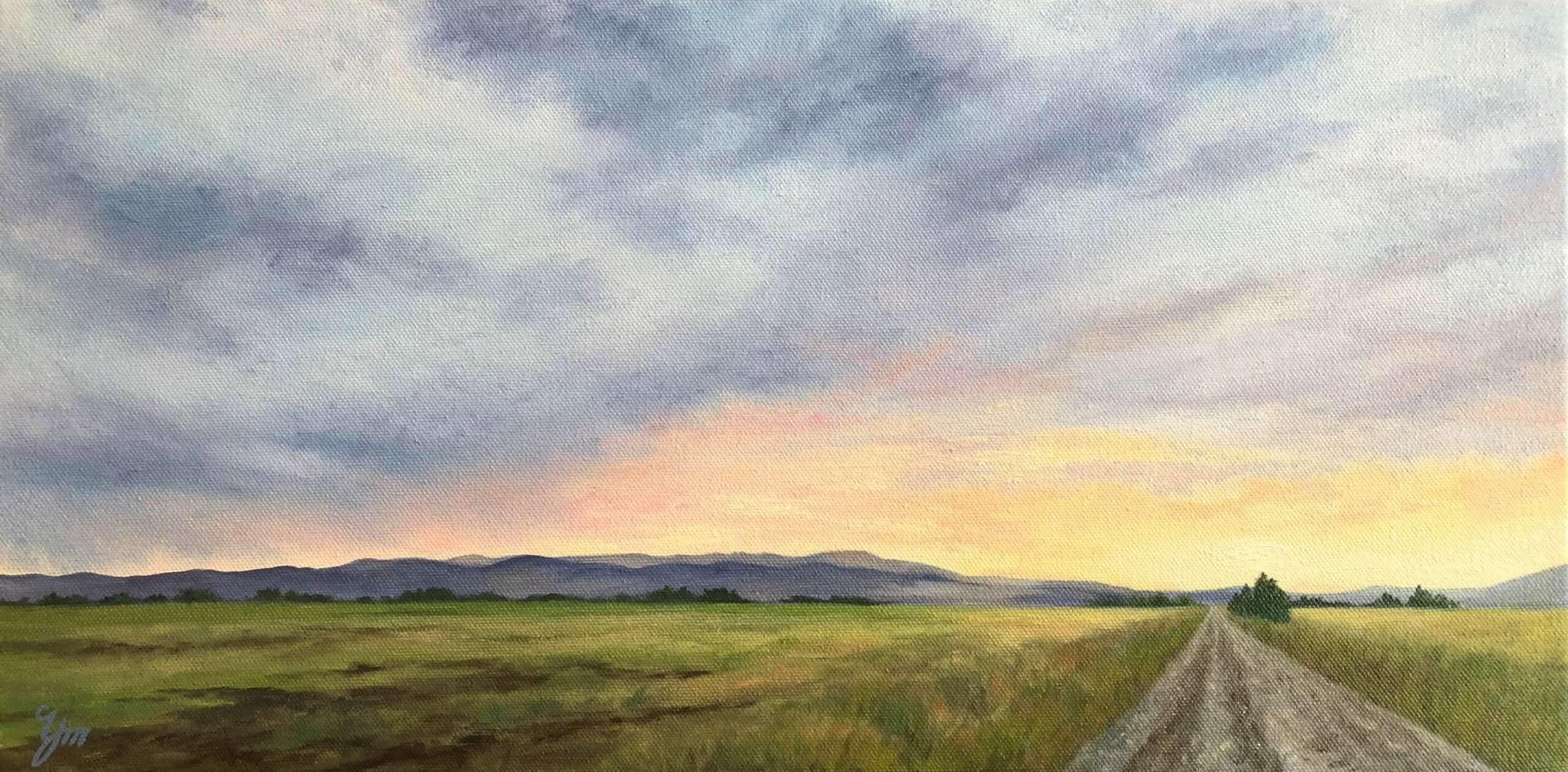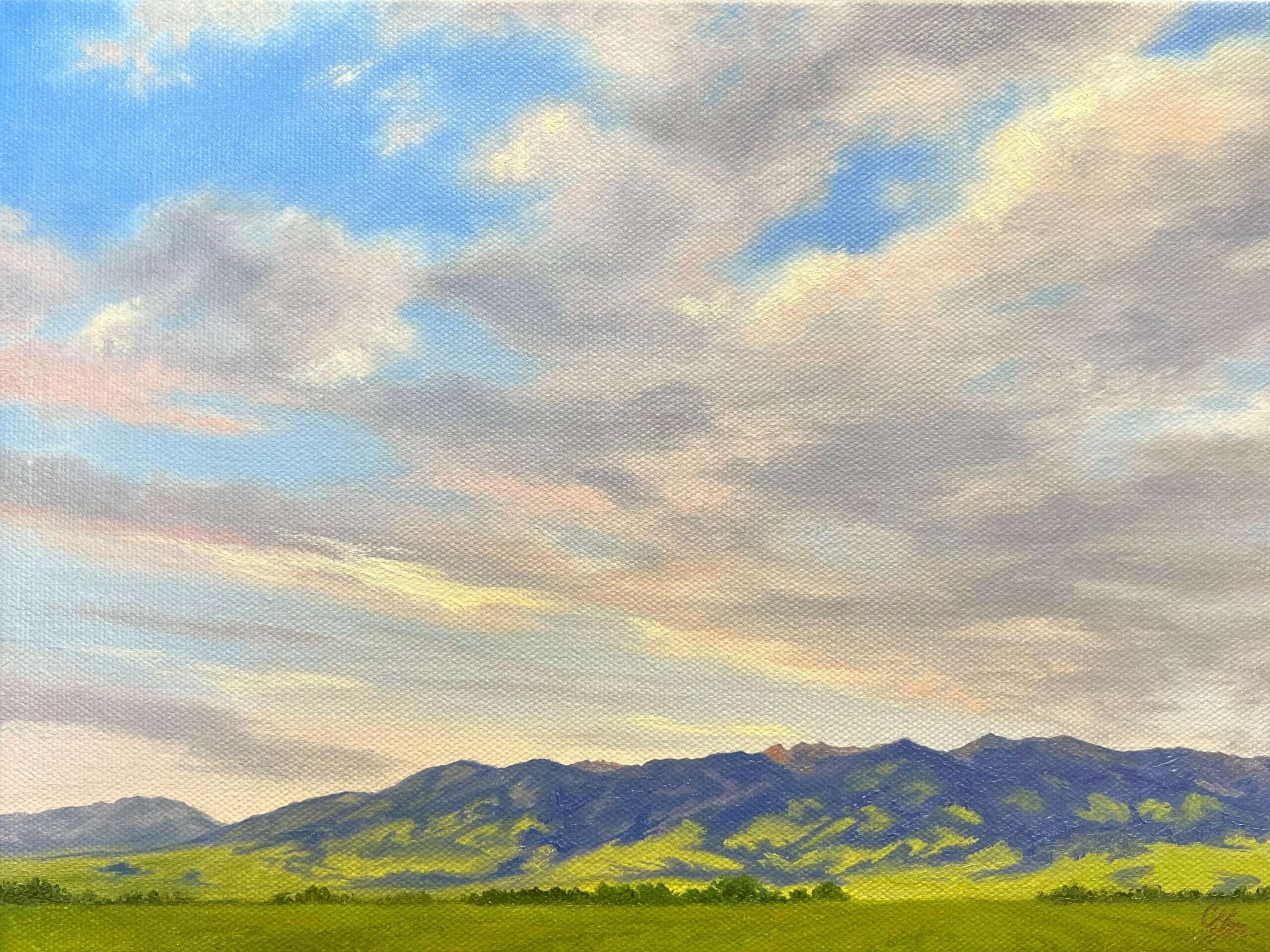 I am a part time fine art landscape painter, who is also working actively in a full-time capacity within our family’s water treatment business. My plan is to return to my painting full time in the future, but in the meantime, I turn to my art for the freedom it brings my spirit! When painting skies, I feel free. Free to trust the process, free from worry about how it will all turn out and free to let the pressures of life slip away. Being born and raised in the Gallatin Valley in Montana, it is no mystery why the landscape is enmeshed in my soul. The beauty and grandeur of our evocative skies beg to be captured by my brush. I seek to represent the emotions of light and color in our vast skies and the cast shadows on the land. My art grows out of the wide, open spaces, and the desire to move the viewers to pause, reflect and seek moments of observation in their own surroundings. My hope is to create a tangible Montana memory with my work – providing a sense of place, peace, and reflection – to imprint a deeper understanding of that moment before it slips away. When my art finds a new home, I hope that it is because the collector knows what it feels like to have Montana woven into their hearts.