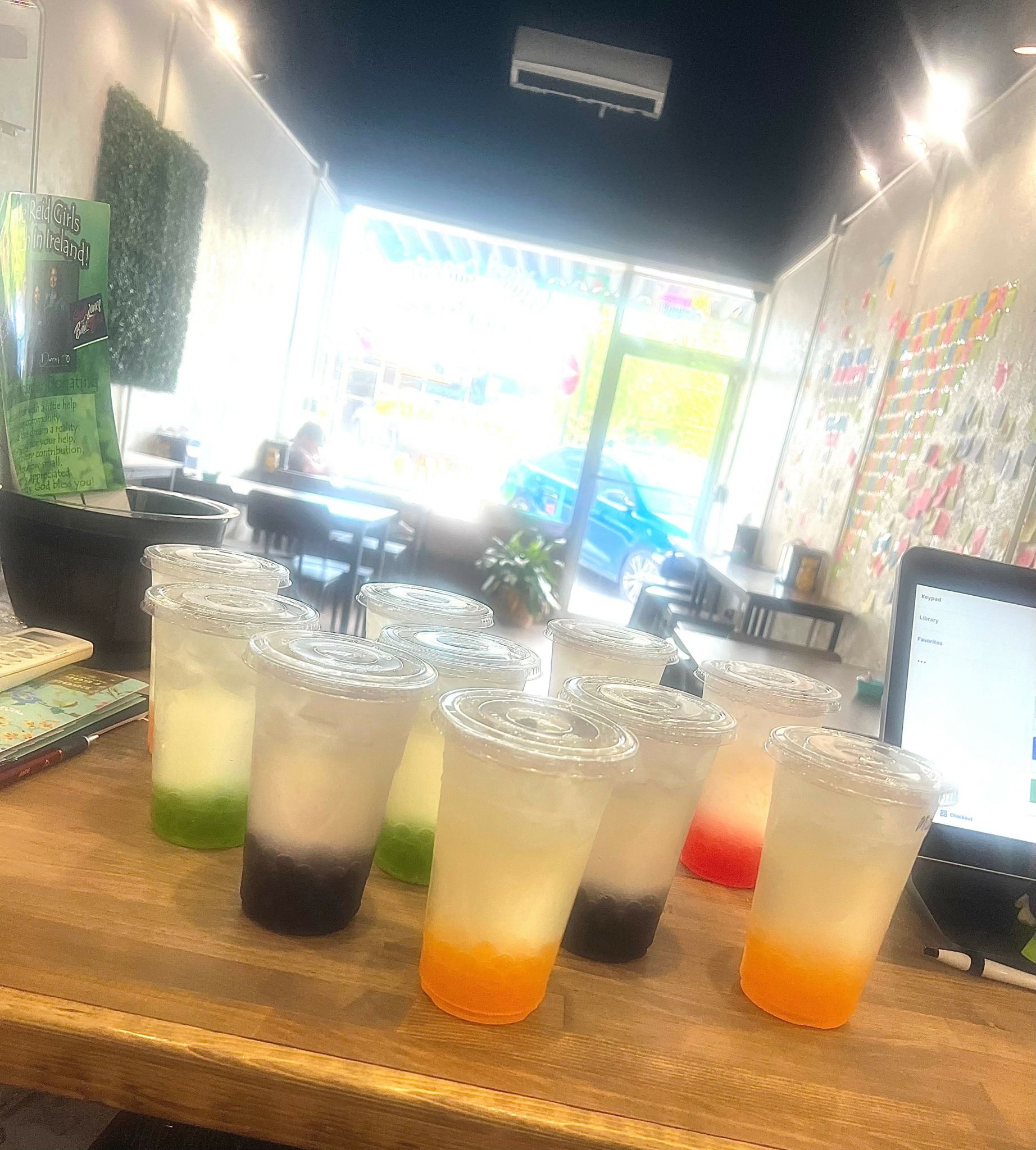 I was a stay at home mom of 4 before opening my store front with periods of working as a substitute teacher. I love community and I love kids. I have been highly involved with both by being a volunteer softball and cheerleading coach and part of several school organizations. I believe boba is mostly known by the younger generations, but I wanted to introduce boba to all because it is so fun! Our store is ran with love and I take pride in service with a smile. I love people and it makes my day to put a smile on someone else’s face! We have a sticky note wall where people can write an encouraging message or just be creative! It makes my heart overjoyed to see all the Bible verses up there from so many customers. It really is one of my favorite features in our store.