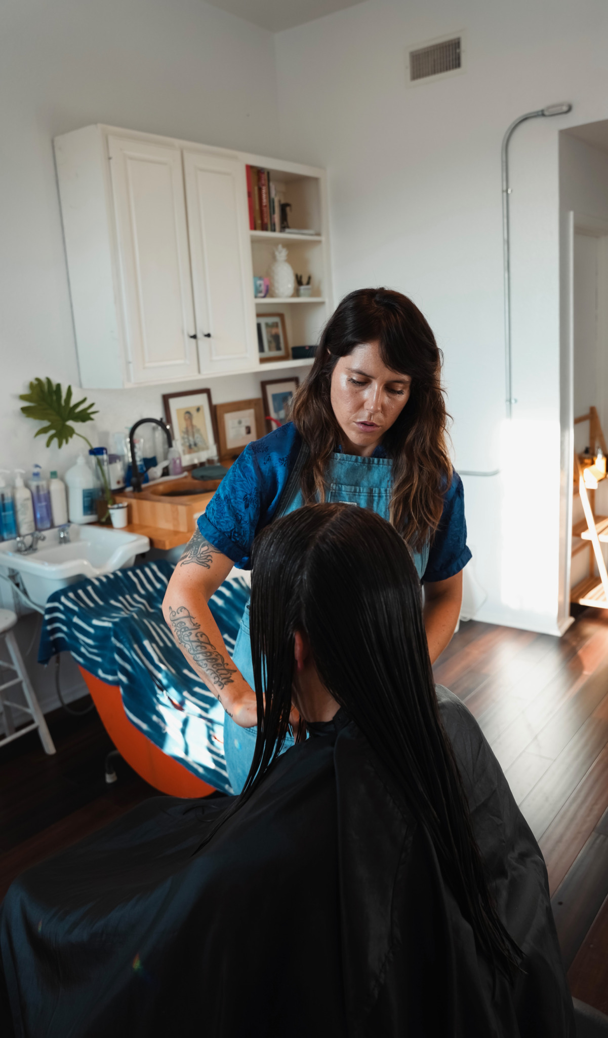 I am an AVEDA trained Master Stylist. I use JOICO color and staying products. I work in a private studio called GREYSCALE SALON and have owned this concept since 2013. My specialty is hair health, wash and go cuts and low to no maintenance color. I aim to unhand cuff my clients from a stylist, arming them with the truth and knowledge they need to grasp a deeper understanding of how their scalp and hair functions. I am a hair coach at my core, who is also a skilled artist.
