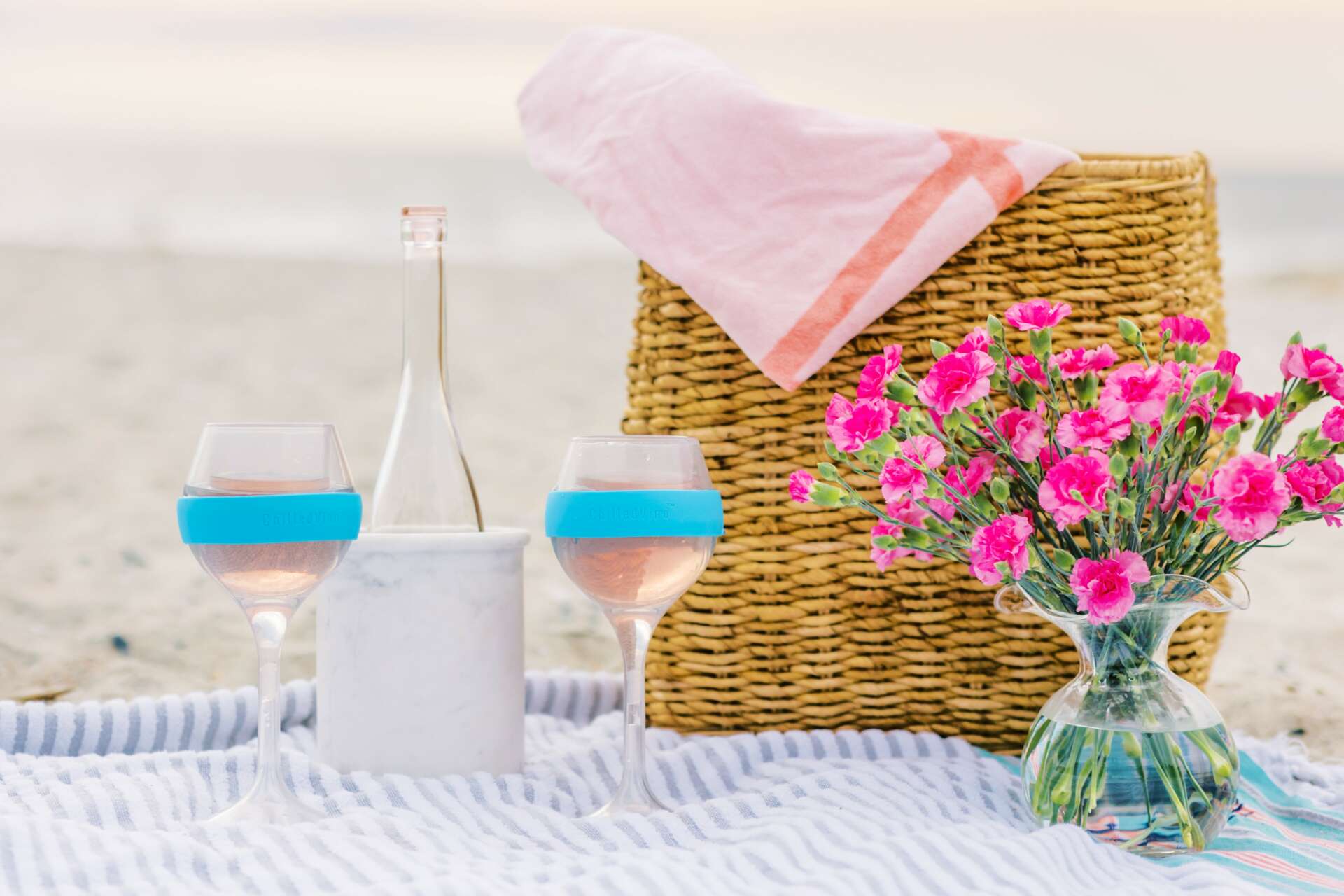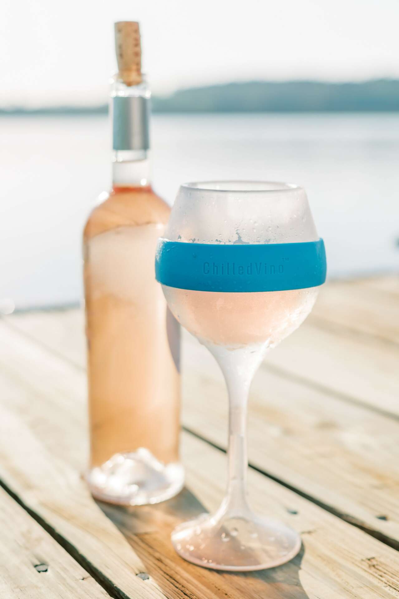 I wanted to create something that people could enjoy their wine in an outdoor setting, and also not feel pressured to drink as fast as possible. We created a chilled wine glass that is specifically designed to keep your drink as cold as possible for longer whether you are indoors or outside by the water.