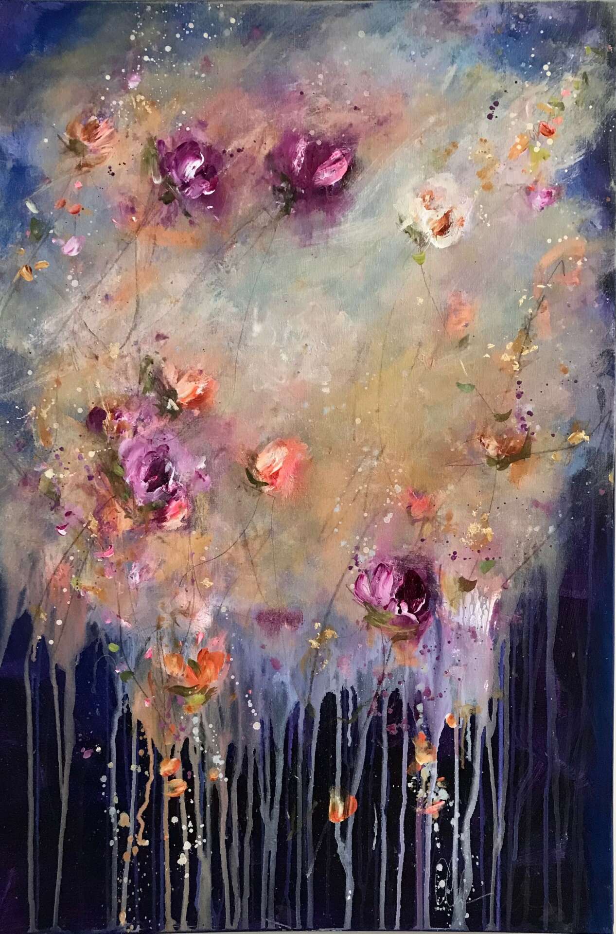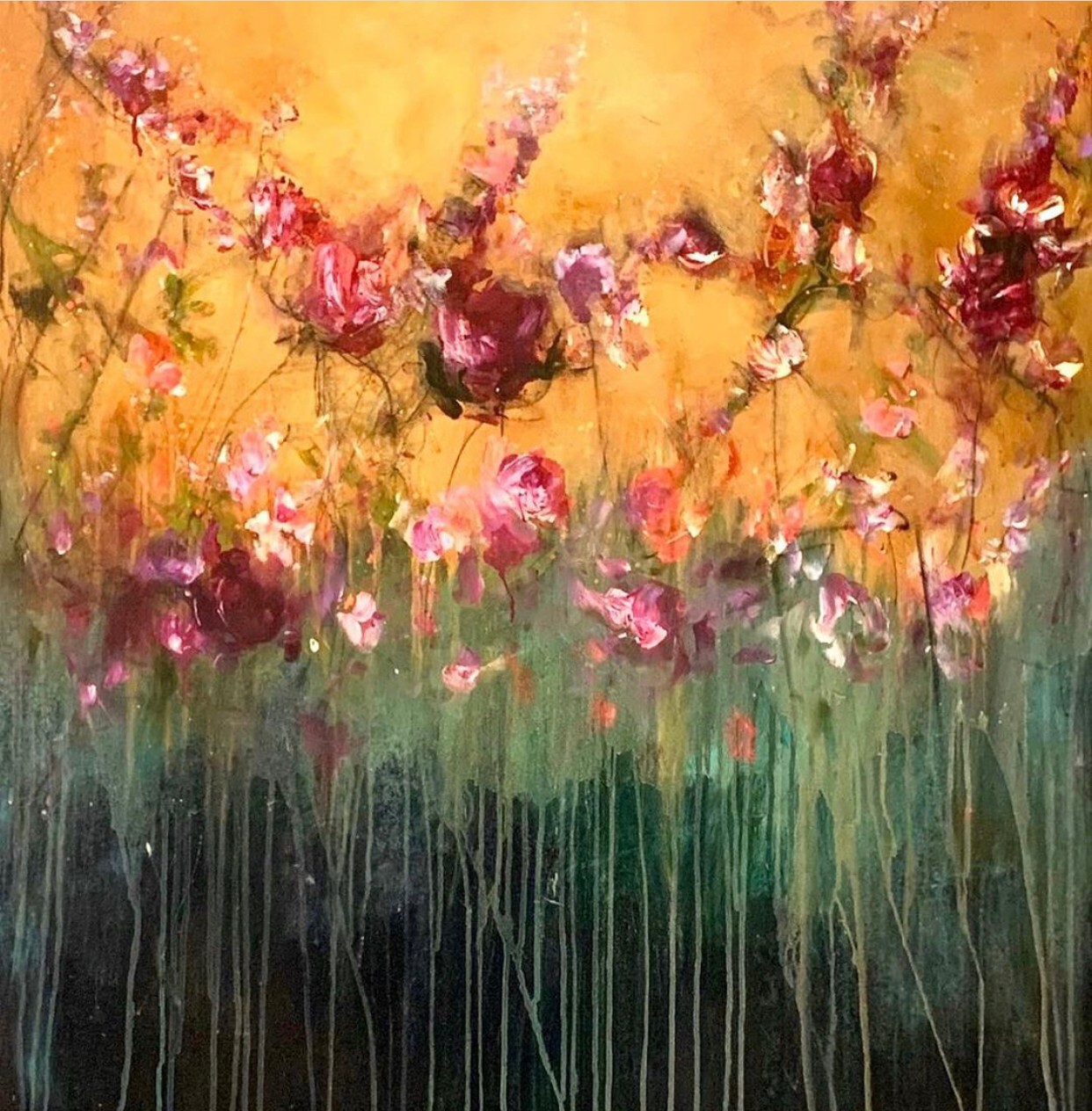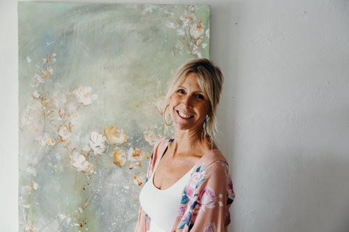 My name is Carrie Clayden and I am a professional artist who paints in Acrylics in a semi abstract expressive style. I was always searching for my “thing”, my calling or niche. I wasn’t always artistic as a child so it was easy to discover, I tried many jobs, school and didn’t find my way until I was much older (40s-50s). I even majored in Art in college but felt like an imposter, I compared my work to others and found it much less developed. In fact after getting my art degree from UCSC in 1995 I quit art altogether. I was married and raising children so I focused on that primarily, still yearning to know what my true calling was. I tried interior design, floral arranging, concierge, waitressing, and all were temporarily good but not quite enough to hold my interest. The pivotal moment came for me when I read the book “The Artist Way” by Julia Cameron. It’s a workbook for creatives to find their purpose. It asks you to do artist dates, to write and answer questions about yourself and really WORK at finding your calling. I decided to try a painting class for an artist date and then a lightbulb went off. The spark that was always there was ignited again and I fell back in love with painting. The big realization came during the class. I loved painting, I just didn’t love MY painting. My eye was more developed then my skills. I had to let myself learn, grow and get better, to not be so critical of my work and then maybe I would get good enough to like it.