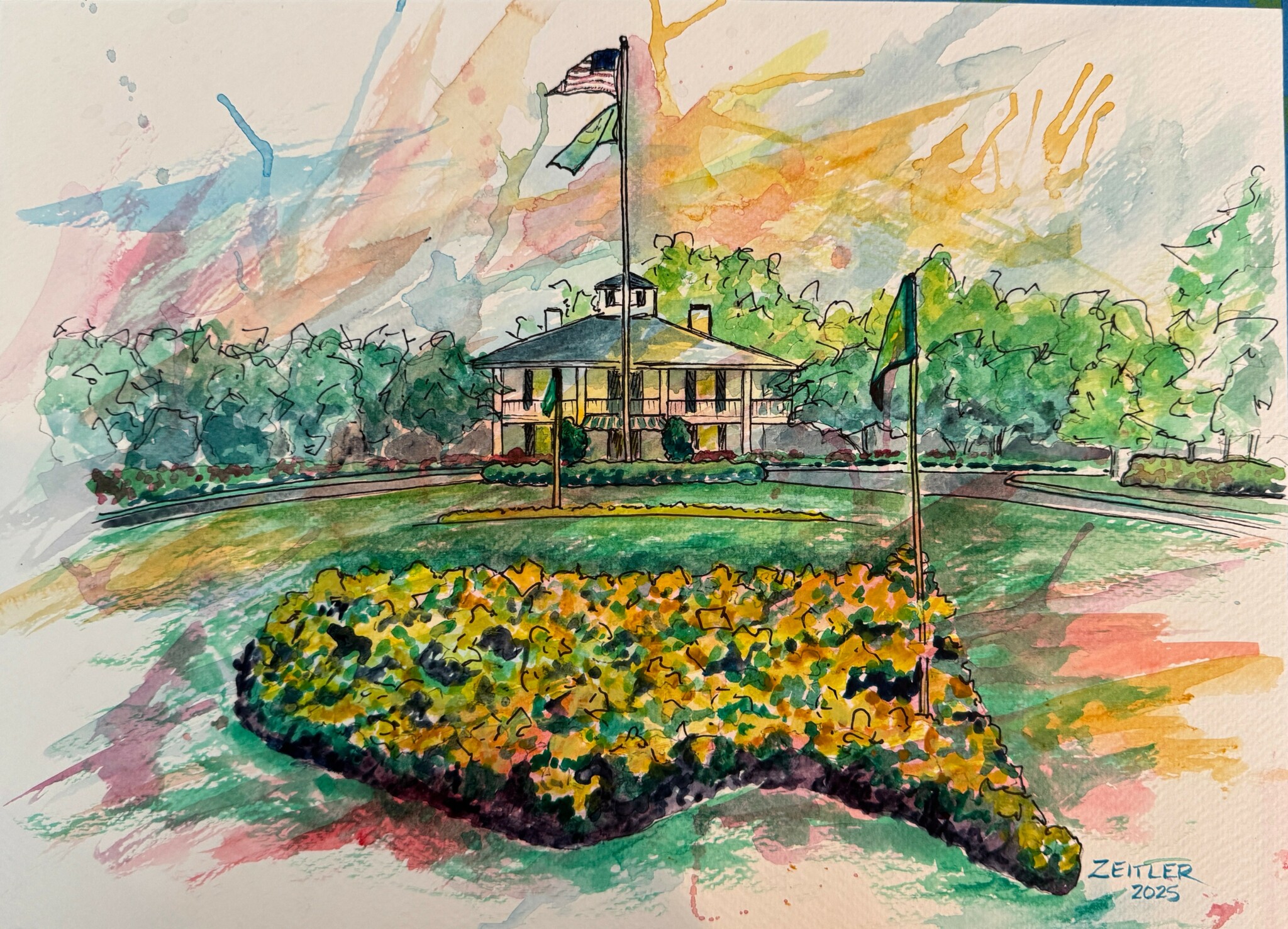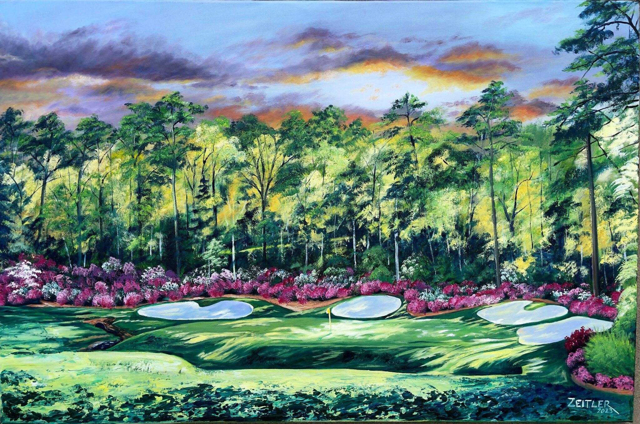 Living in the suburbs of Augusta, the Masters is like a season here. I was chosen to display my golf artwork at Augusta regional airport a few years ago and received more inquiries for custom art than I could handle. That led me to create art prints, which quickly grew beyond just a few of my designs. Before I knew it, my art was being seen not just locally, but requested nationally, opening doors I hadn’t even imagined. In hindsight, I wish something as simple as making prints of my work would’ve occurred to me years ago. Although many of my clients tend to initially contact me because they are lovers of my golf art, I retain a lot of these customers as clients for future commissioned pieces. I’ve painted everything from cars and pets, to vacation destination paintings. Now, when I create an art piece, I visualize what it would look like as a print, or on a product of some sort so that more people could enjoy the piece.