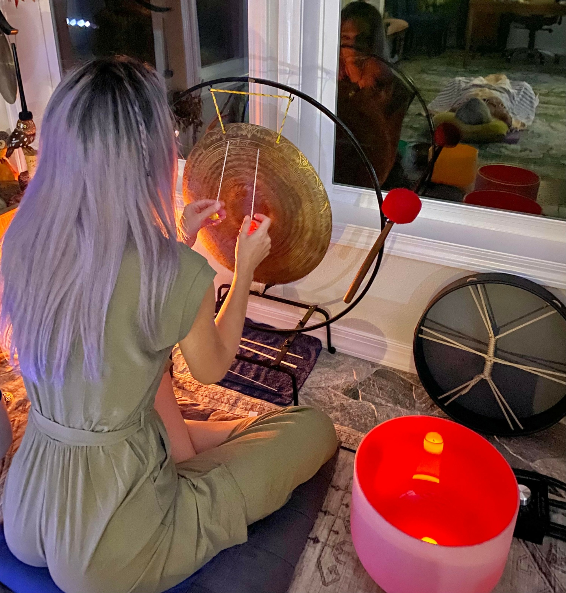 I have had a lot of training over the past year. It began with online classes, learning from a wonderful Sound Healing Practitioner in Thailand, named Ali Young. He was recommended to me by Jaime Ayoub, the incredible Sound Healing Practitioner who gave me my first sound bath in Vegas. (If you ever visit Vegas, definitely look Jaime up for a wonderful sound bath experience!) In searching for Ali’s class online, I came across a course out of London that was accredited by Complementary Therapists Accredited Association. The course was given by Tom Llewellyn, tutor and director of Soulremember Retreats. It took about 2 months to complete this one. I learned about the science of sound healing and the many different instruments that could be used in a sound healing session. Jaime recommended taking Ali’s course, then when I was serious about it, attend an in person course with Meditate School of Sound Healing. It just so happened that as my husband and I were moving to Florida last March, there was a course to be held out of Sarasota! After five days there, I became certified in Vibrational and Sound Therapies by Meditate School of Sound Healing. I have continued my education the past year by attending an amazing Gong workshop held by Mike Tamburo, a professional of the Gong for over 20 years. I will continue to take classes and workshops in the future to keep this wonderful gift blooming.