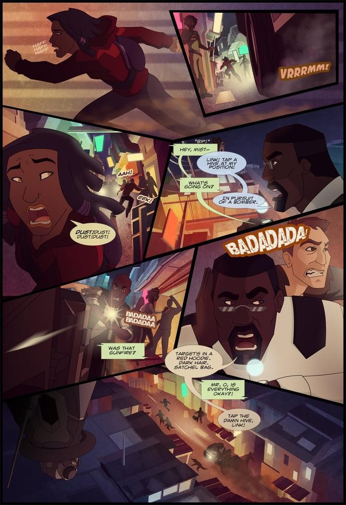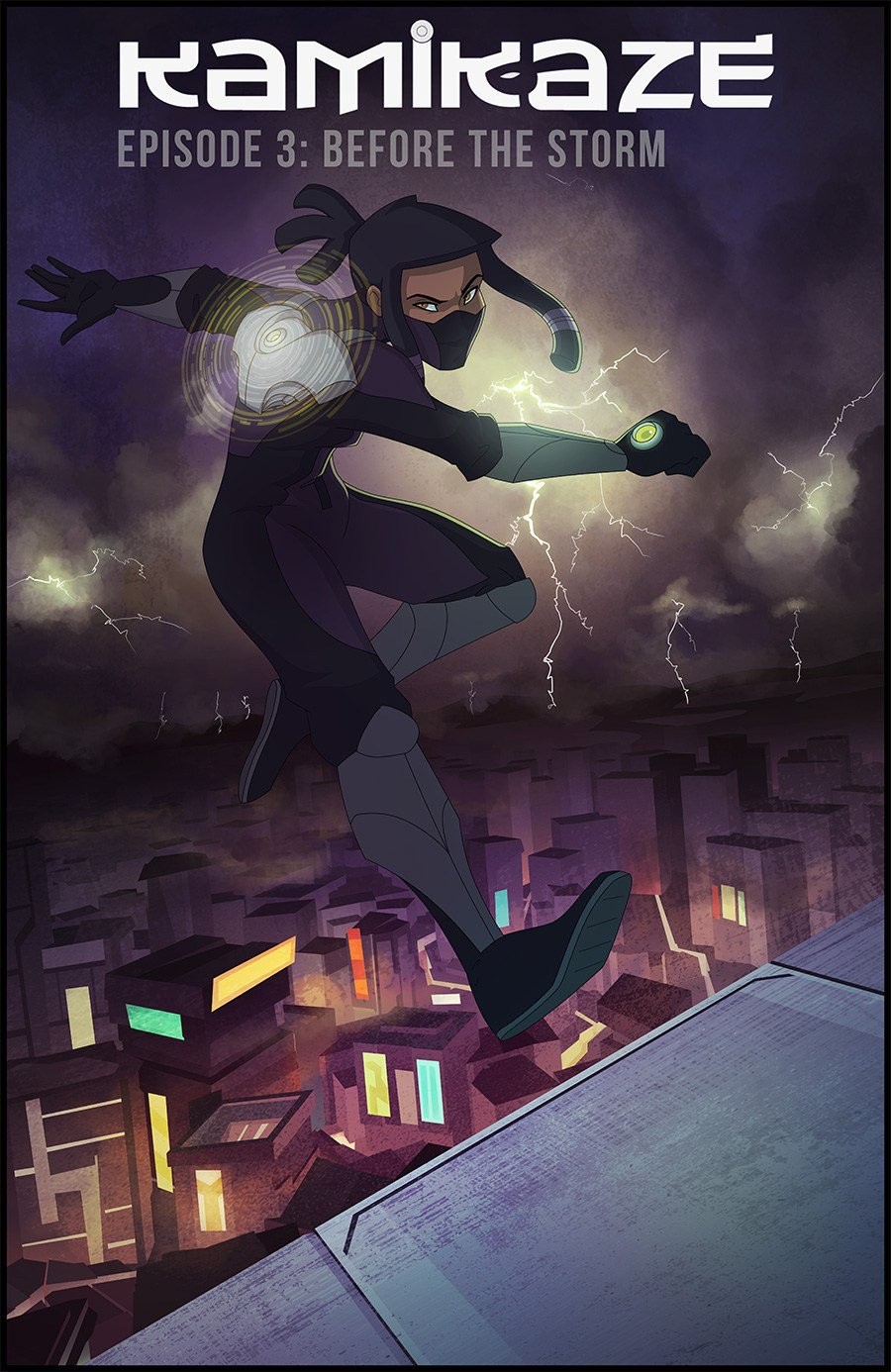 “Kamikaze,” is an award winning comic series (and animated short!!) about a young courier turned fledgling covert operative. Our main character, Markesha Nin, just wants to get rent paid, and after a job stiffs her, she takes a risky gig that blows up in her face. She’s thrown into the path of a mysterious organization and choses to join not only as a means to keep herself alive, but as a chance to change her city for the better. It’s kind of like if “Arcane” and “Mad Max” had a baby, with “Batman Beyond” as the uncle.