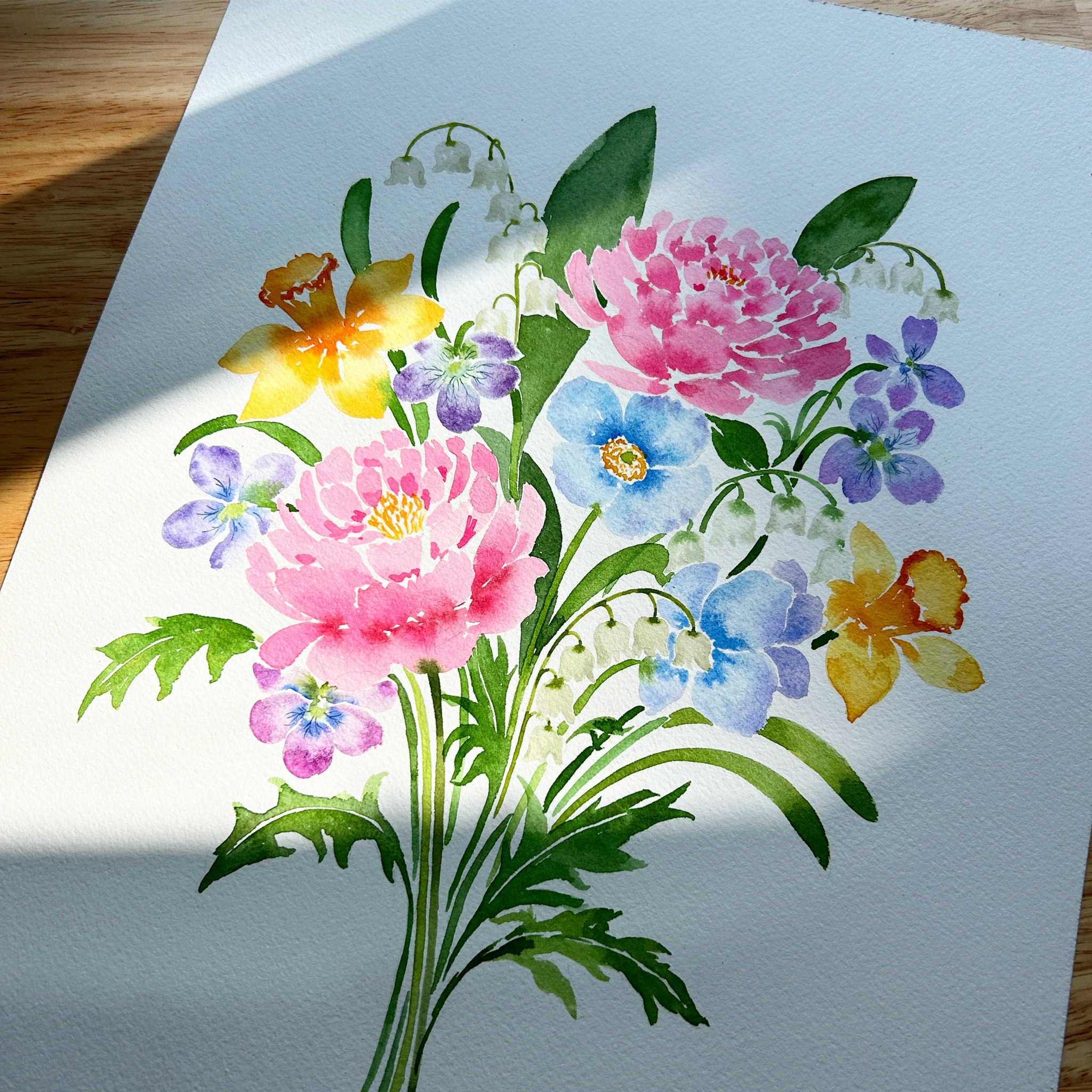 In the first weeks of lockdown in 2020, like many others, I discovered art tutorials on YouTube, as well as a set of watercolors hiding in my closet, from 1996 (when I was 7!). After a few Jenna Rainey tutorials (an incredible loose watercolor artist), I realized how intuitive I found watercolor – in contrast to oils and acrylics which I never found my groove with. I started an instagram for my watercolor practice, mostly for myself, and I painted every single day, for a year. As I grew my skills, my following grew as well. I started painting bouquets created by local florists, tagging them on instagram where I would post my painting process. One day, a florist told me she wanted to buy the painting. That was the lightbulb moment in which I realized I could make money from this intensely enjoyable hobby. And that was the start of my business!