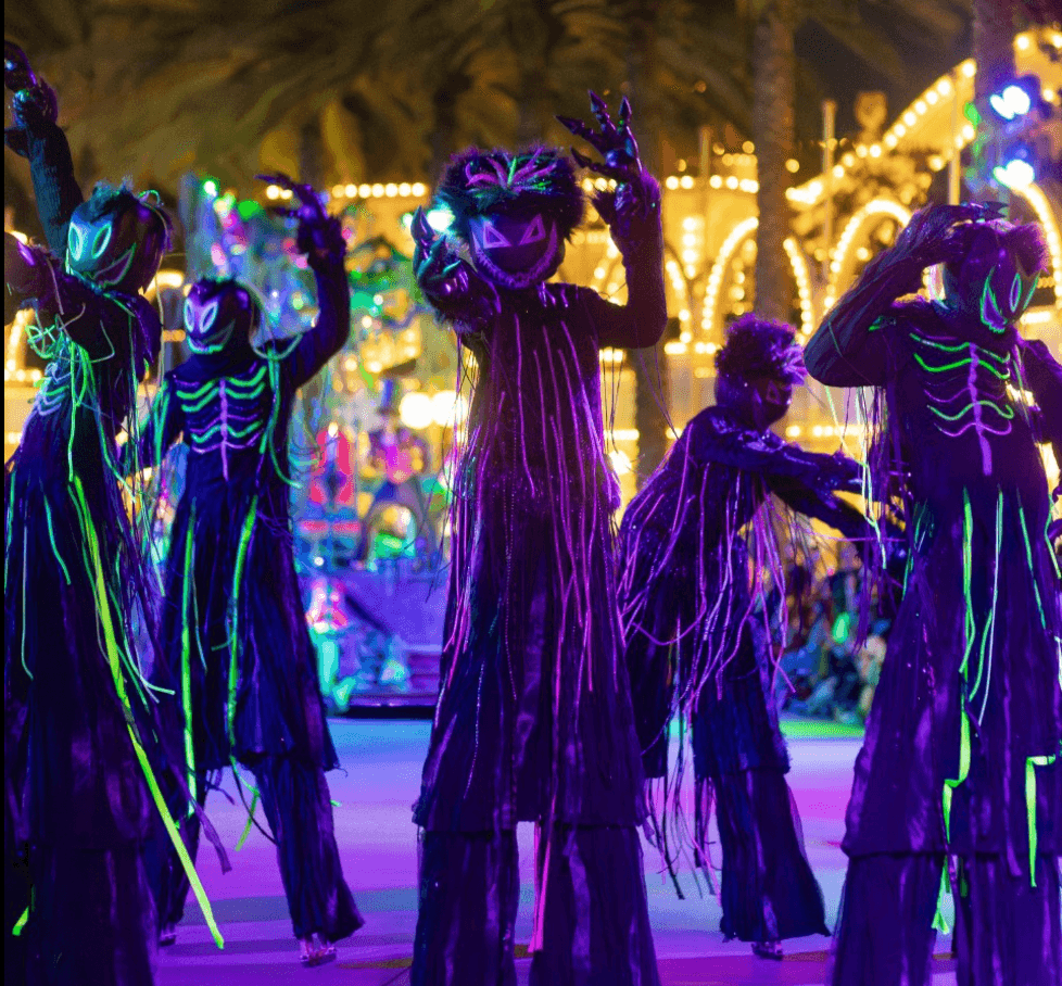 Today, I work as a live performer in the Southern California theme park industry. I’m currently a dinosaur puppeteer at Universal Studios Hollywood and a scare actor during Halloween Horror Nights, as well as a parade performer at Disneyland. Performing at such iconic venues, especially Disneyland with its rich entertainment legacy, has been a dream come true and continues to push me as an artist and athlete.