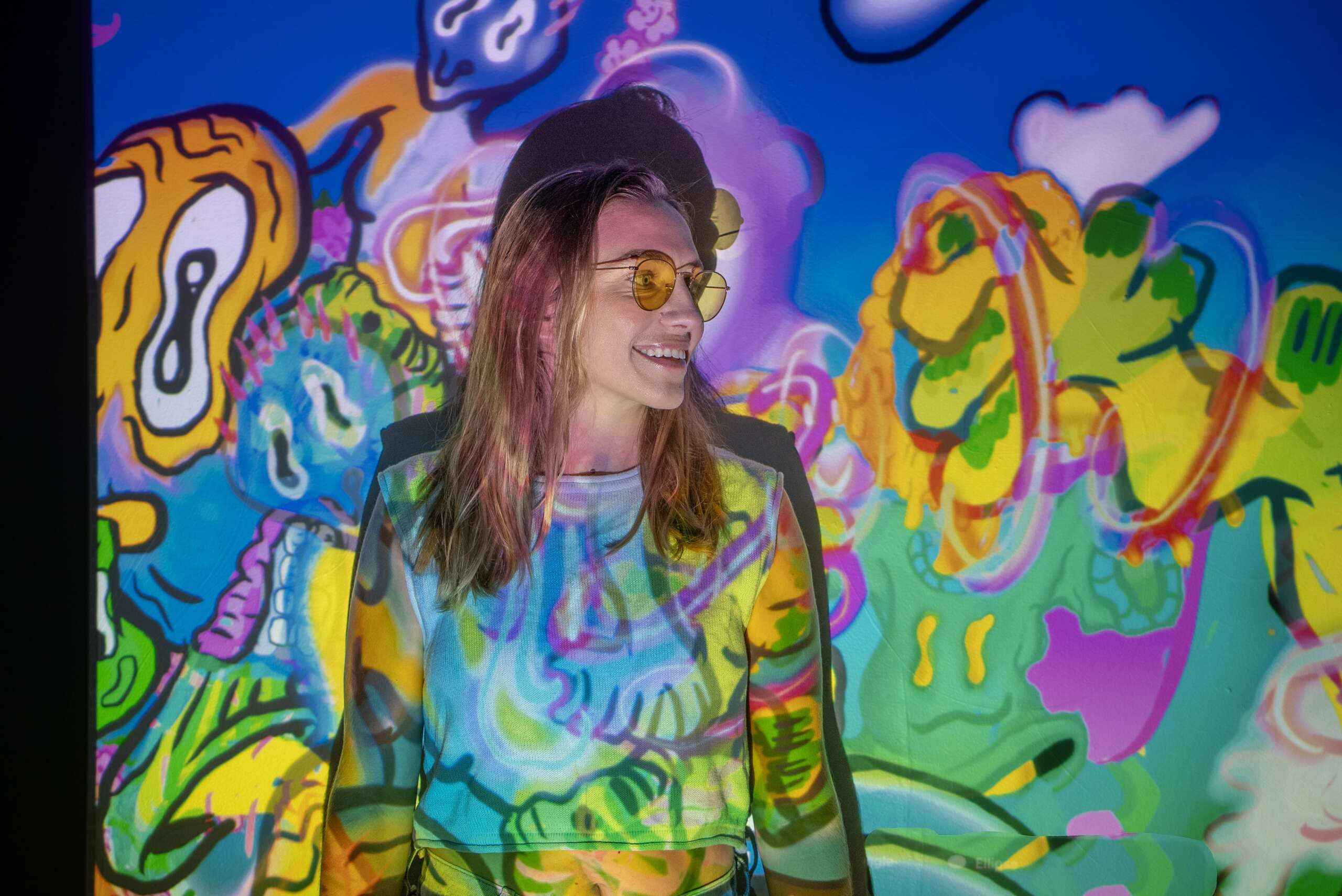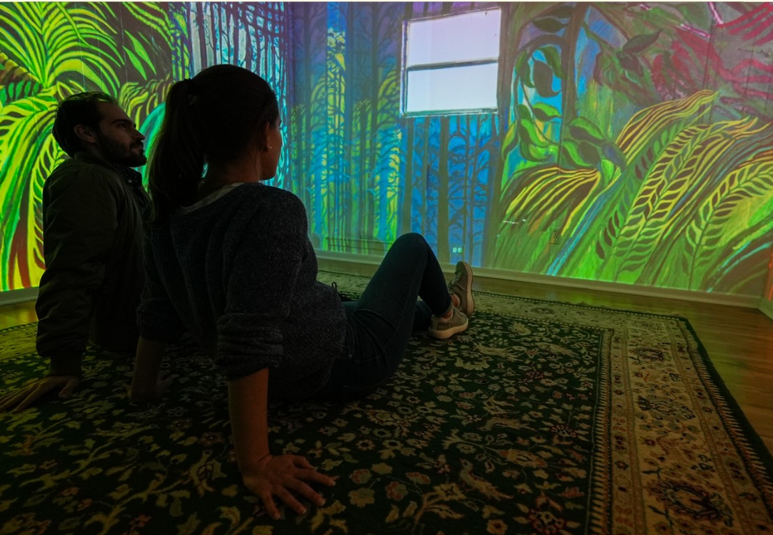 I stumbled into learning projection mapping and video art design. I had worked at galleries and one had given me a projector they had replaced. I kept it and used it to curate short film screenings in someone’s yard, then had it sitting in my room when I moved to Texas. A musician friend was over and seeing it asked if I could do the visuals on his band for a house show that weekend. We spent the day making a choppy water color stop-motion and projected it on a few bands that weekend. From there I started experimenting with the projector using photoshop to play with the areas where light wouldn’t show, my roommate worked in concert lighting saw what I was doing and told me “it’s called projection mapping, there’s a program for that – Resolume”. From then on I deep dove into it and curated art shows in my house that utilized it. People were interested in projection as a tool, it plugged me into exhibit opportunities, stage design gigs, immersive jobs etc.