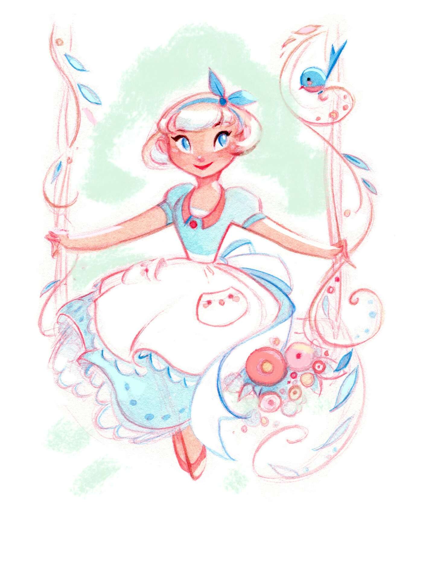 In the course of my career I have worn a lot of hats, from Story Associate for Walt Disney Animation to illustrator, to toy designer, to my current role as Art Director of a gorgeous augmented reality game and VisDev Artist on an unannounced animated feature. Throughout this time, I have also built a rich independent career creating original illustrations – from fairies and mermaids to pinup witches – and selling prints of my work all around the world. I believe that everyone deserves kindness, warmth, and wonder in their lives. In a world that can often be cold and alienating, I want my art to feel like a hug.
