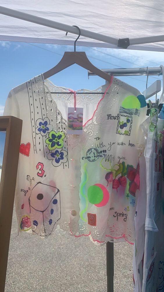 I went to school for fashion design in Philadelphia where I learned to sew and design. I then took ideas and designs from my senior collection and started adding those to thrifted pieces like t-shirts and denim jackets, It instantly became works of arts on everyday wear. My customers get to shop one of kind, sustainable pieces at an accessible price! The feedback I normally get is that it’s “a compliment brand” meaning you are bound to get compliments when you’re wearing Cassie’s Shop. I thrift all my materials which means every piece is completely made from thrifted pieces like button down shirts, denim, t-shirts, curtains, bedsheets, and tablecloths!
