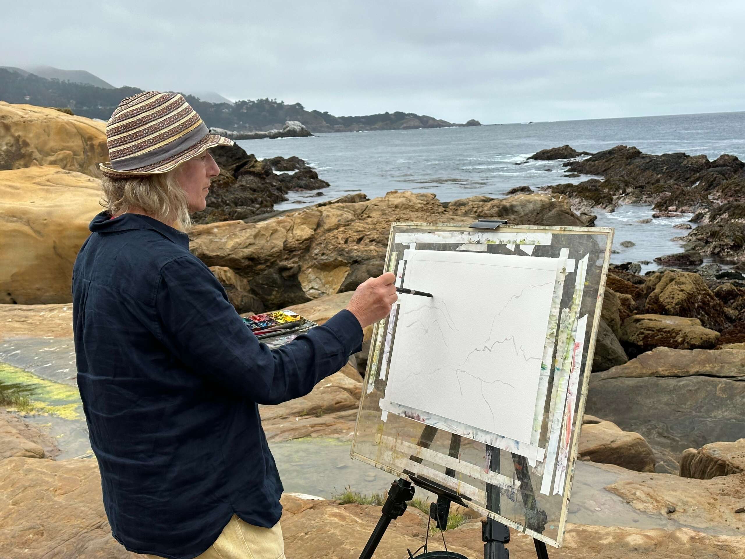 I am proud to have launched a workshop series, teaching plein air, painting. It is now in its 9th year. Four or five times a year, I travel to exciting locations for long weekend retreats. Selecting the locations and organising the events is delightful, and I am lucky to be living in California, however, the weather can be an unpredictable factor.