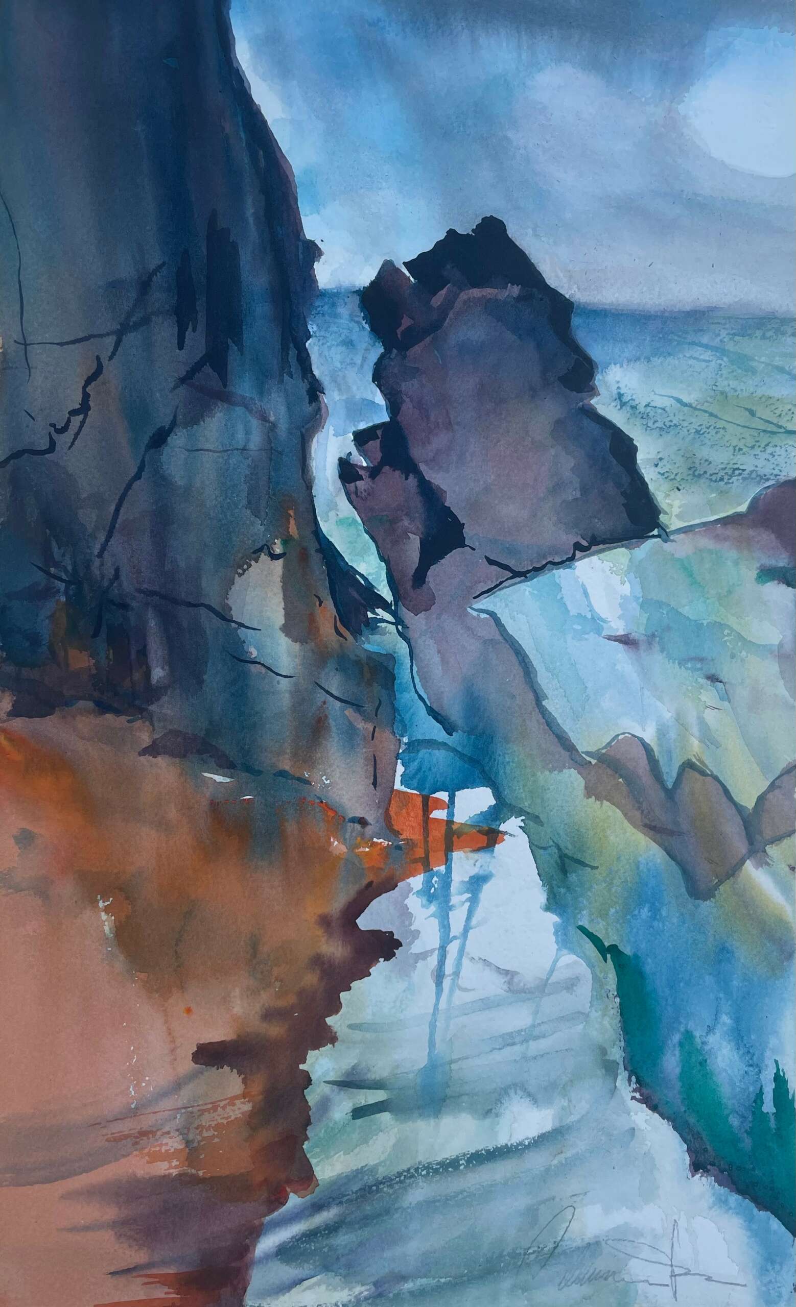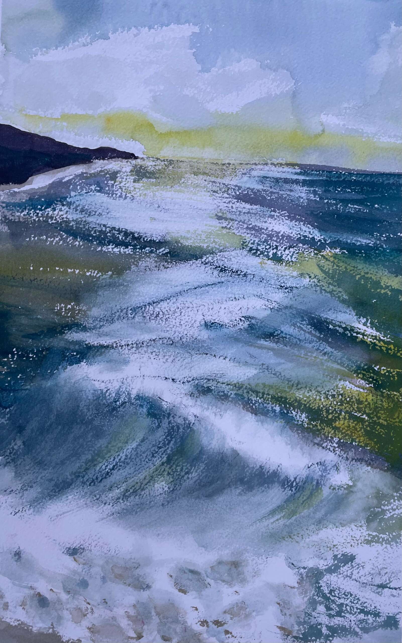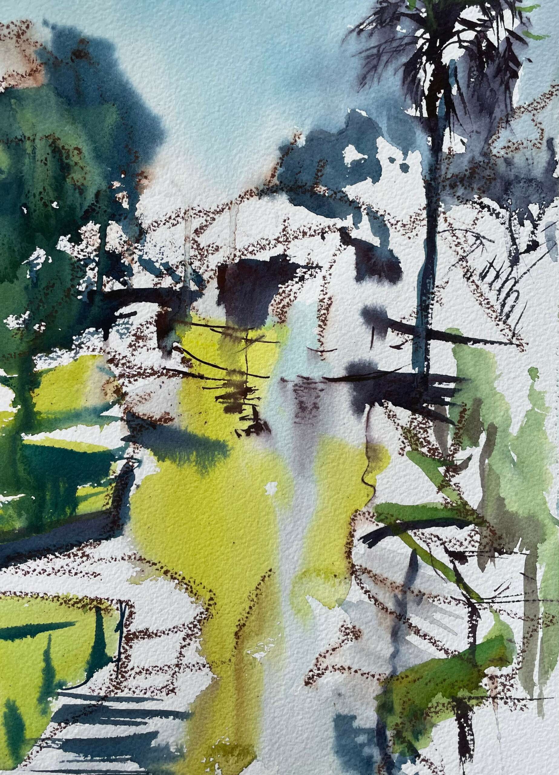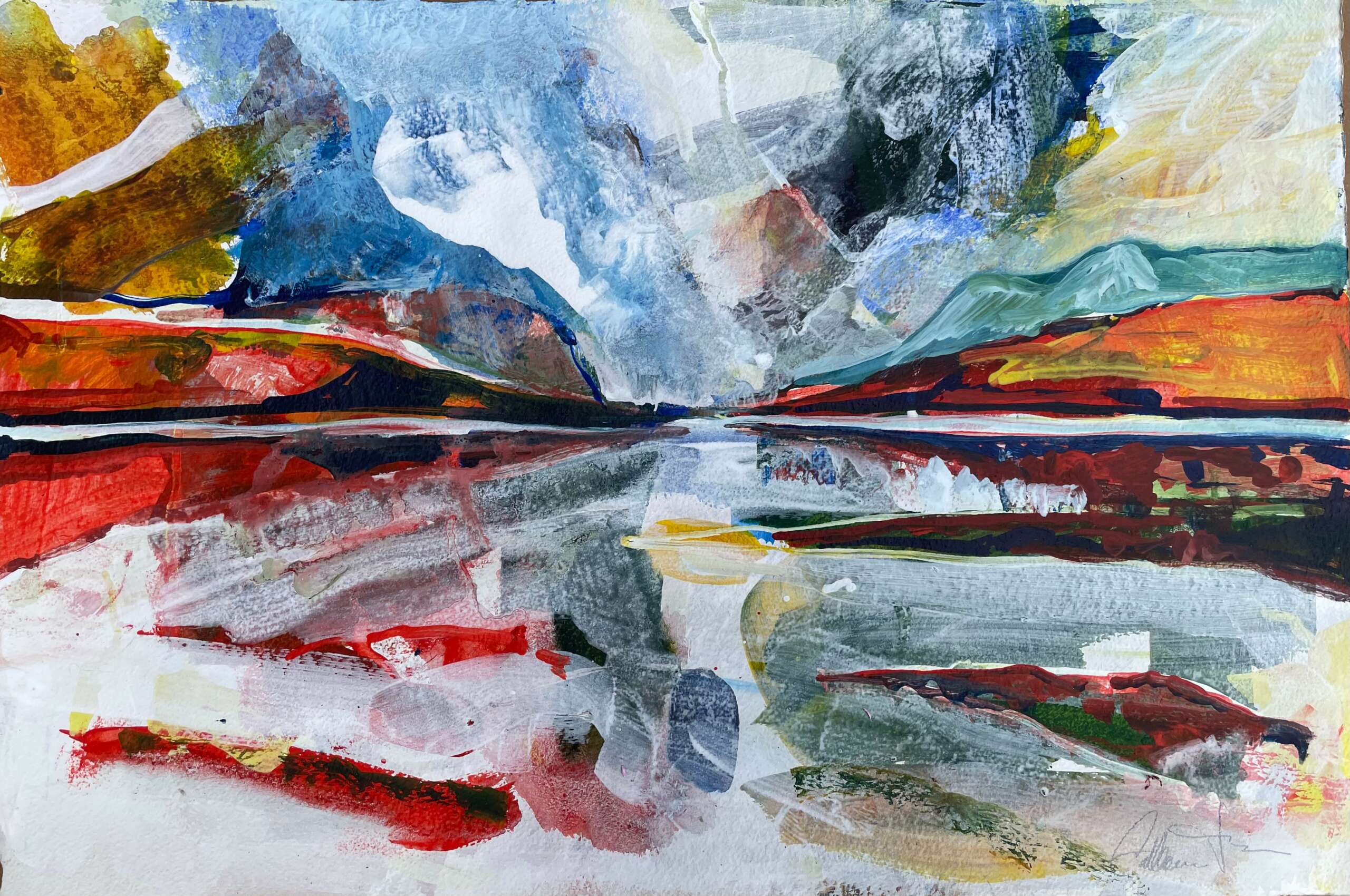 I soon became interested in painting with all types of media, as well as printmaking. Different media lend themselves better to certain subject matter. I find painting en plein air with watercolour to be one of the most engaging and rewarding activities. It is a total immersion like a meditation. What interests me the most is being in beautiful, natural environments and capturing the feeling and emotion of the experience. Being present and responding to the landscape in a unique, personal way is much more interesting than rendering. I do also work with acrylics and oils in my studio practice. I draw constantly and also make simple prints. I am known for my loose, painterly, abstract style and bold and imaginative colour. Licensing of digital images is something that. I offer, if clients are looking for images of a different scale to the original painting. I have been working with interior designers, who often look for large scale imagery. I paint almost every day and have a vast inventory of work.