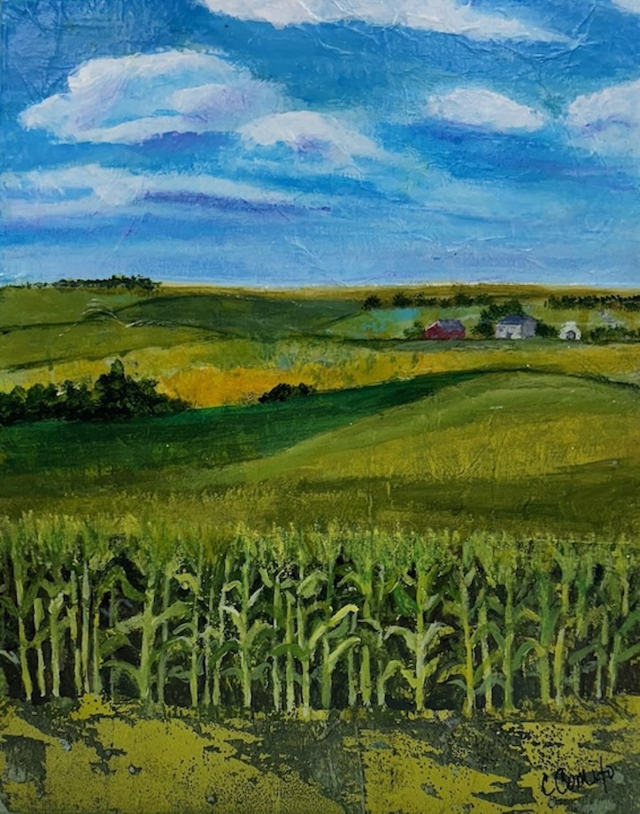 Today, I create in what I cheerfully call my “messy studio,” producing works that blend technical skill with emotional resonance. My mixed-media pieces, available through galleries and my website (ceceliacomitoart.com), capture the essence of rural Iowa while pushing the boundaries of traditional landscape art. It’s a creative journey that has taught me that sometimes the most inspiring path forward is the one that leads back home.