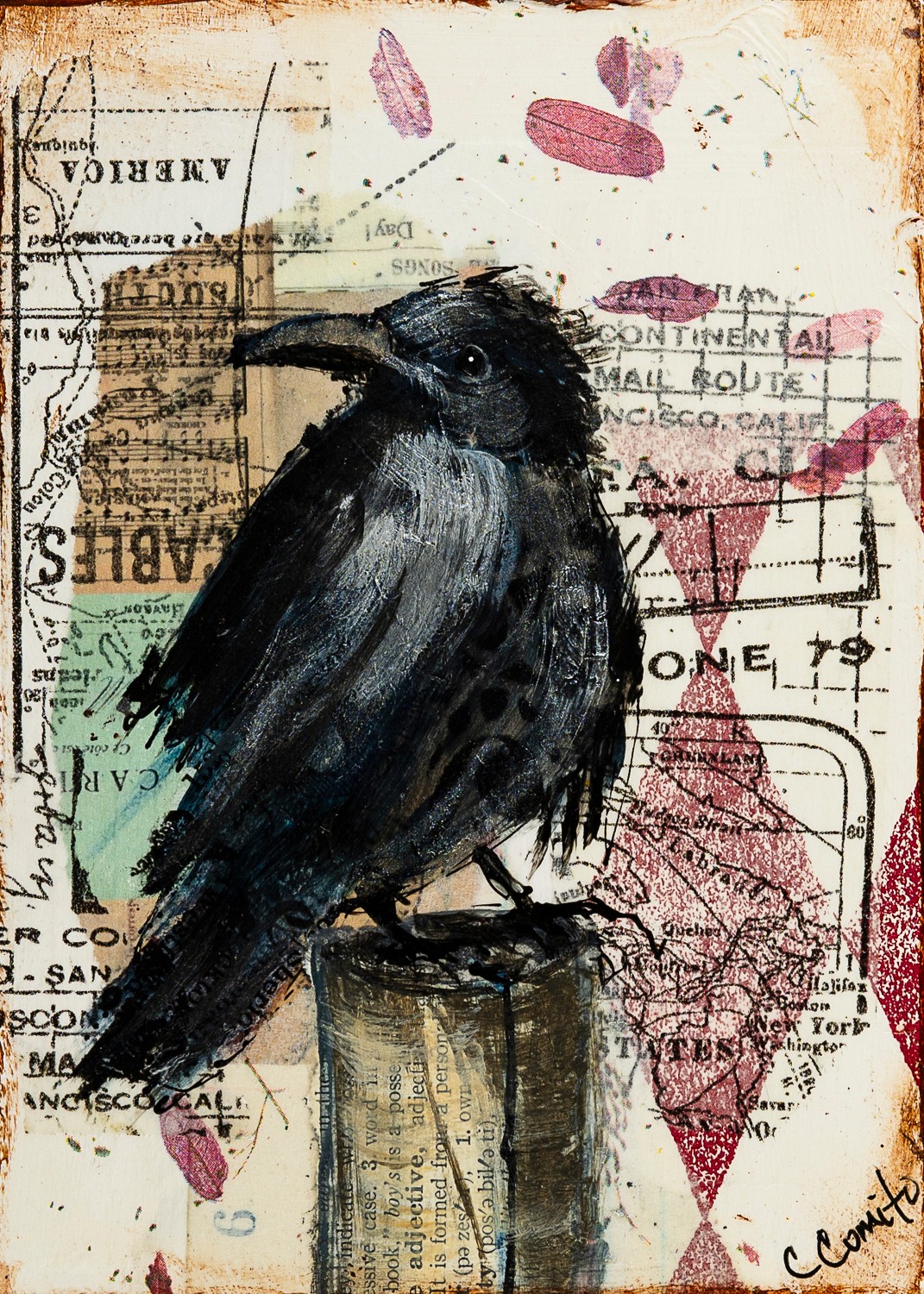 Today, I work primarily on cradle boards, which can withstand the layers of paint, paper, and ephemera that define my process. I continue to seek out workshops and classes to refine my techniques and feed my curiosity, learning from incredible artists along the way.